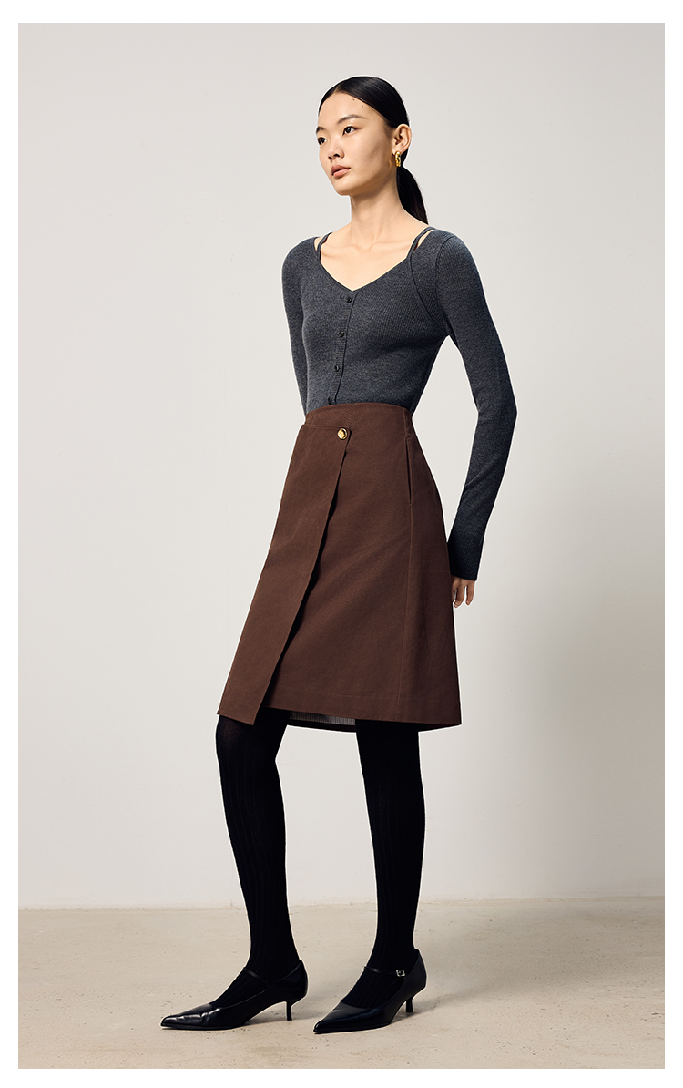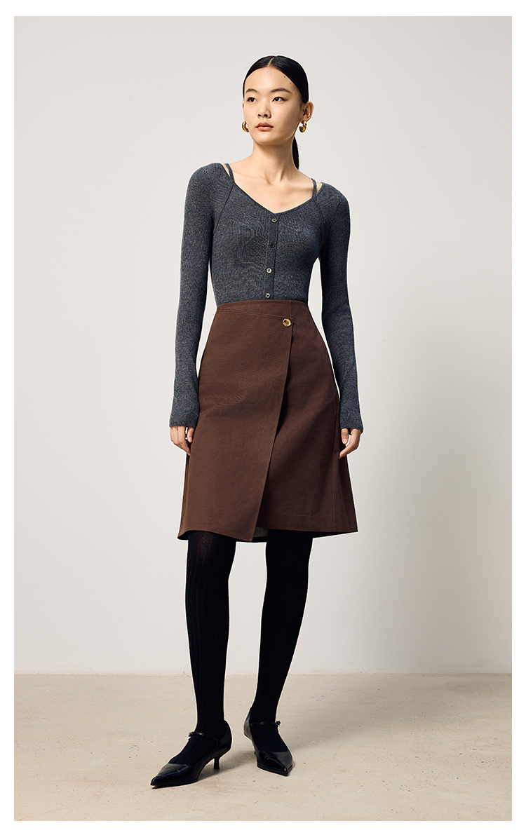 【JASON WU】2025秋冬新款小众设计感时尚纯色水洗棉A型半身裙裙子女