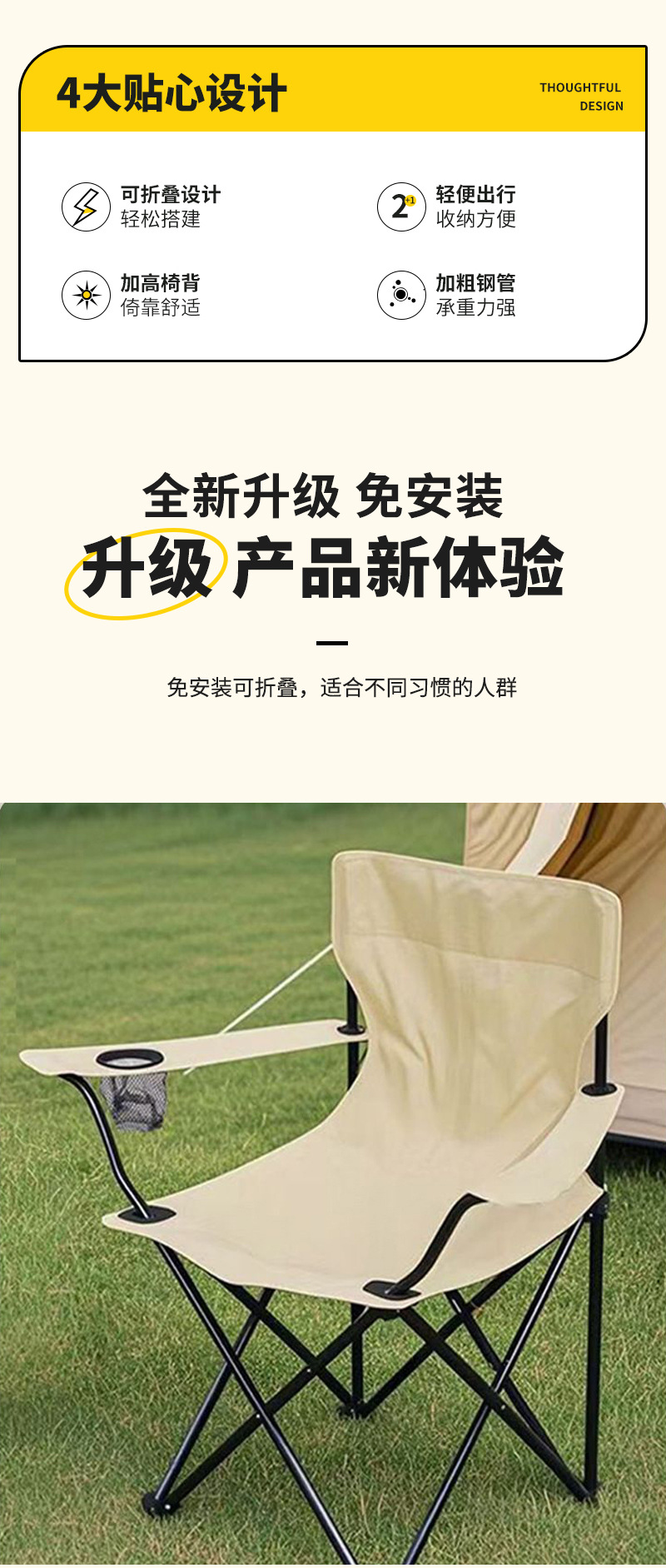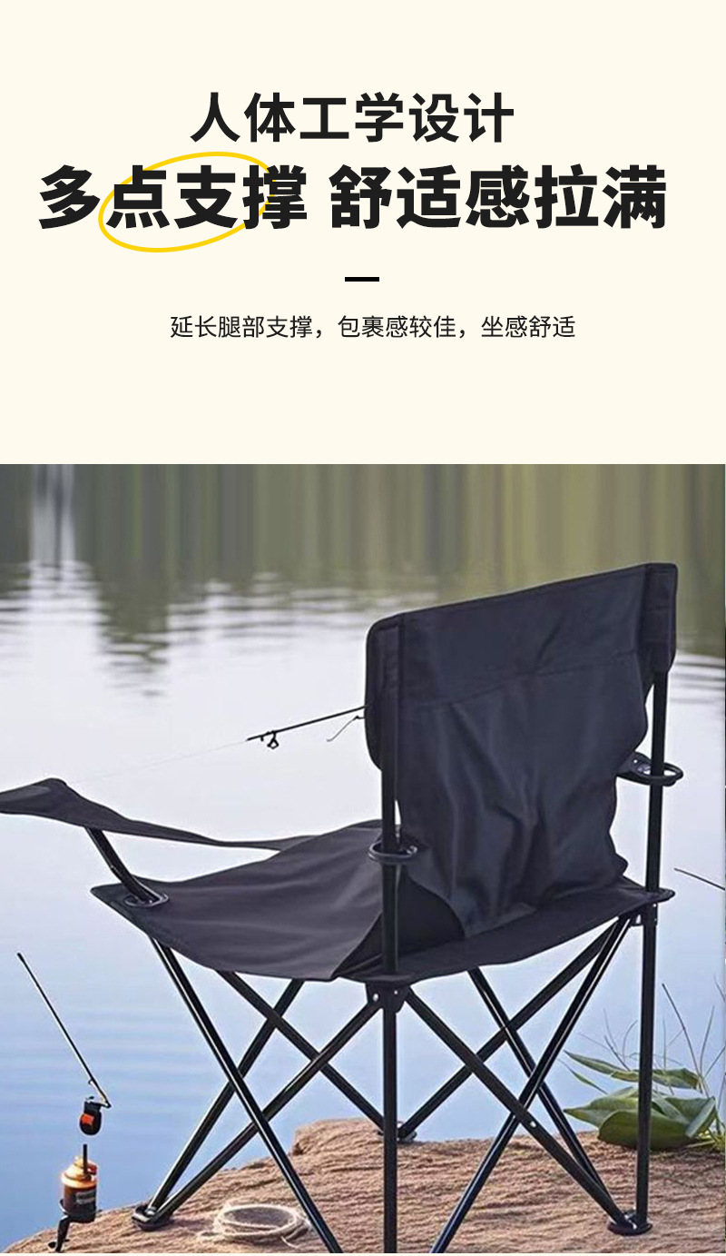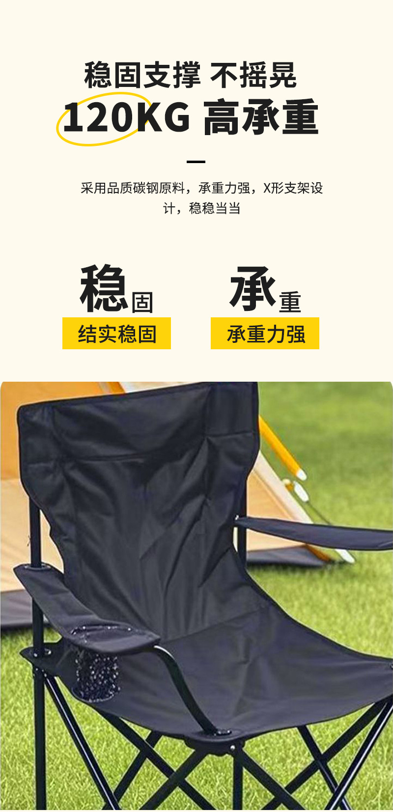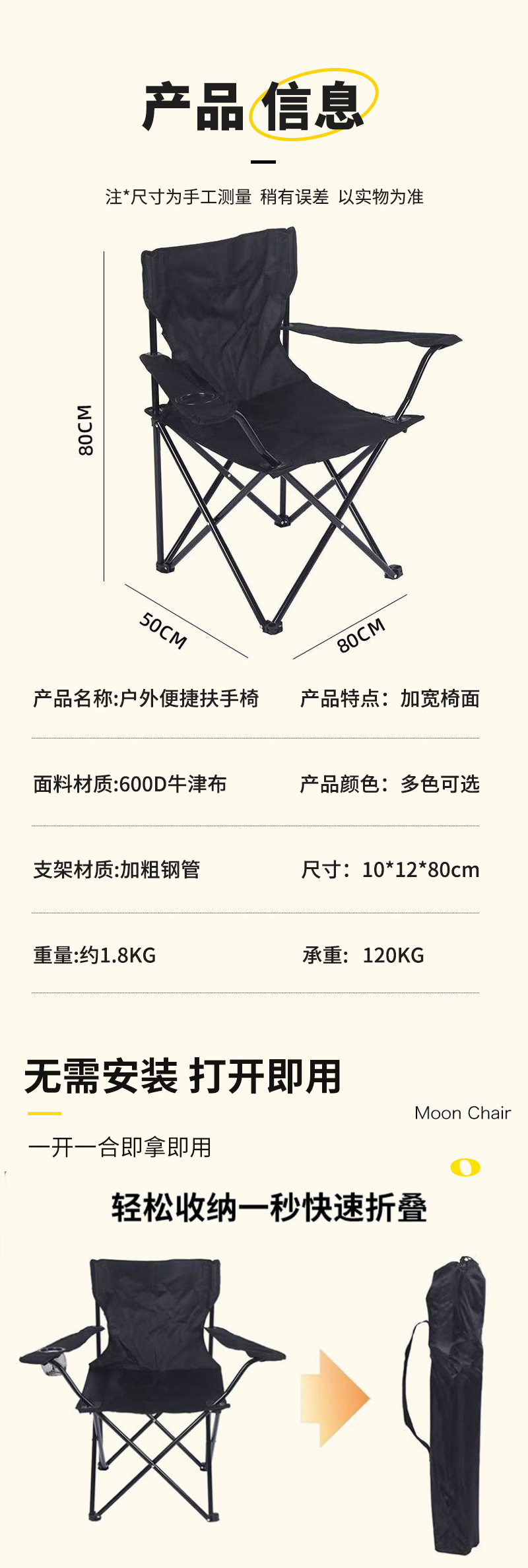 [经典便携!一步收纳】黑色露营 野餐钓鱼折叠椅 户外便携牛津布 休闲沙滩椅 户外折叠椅子