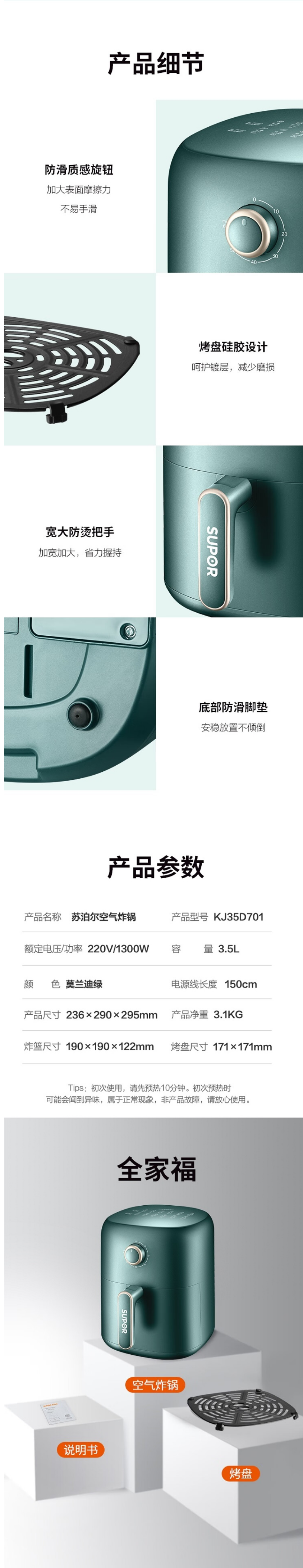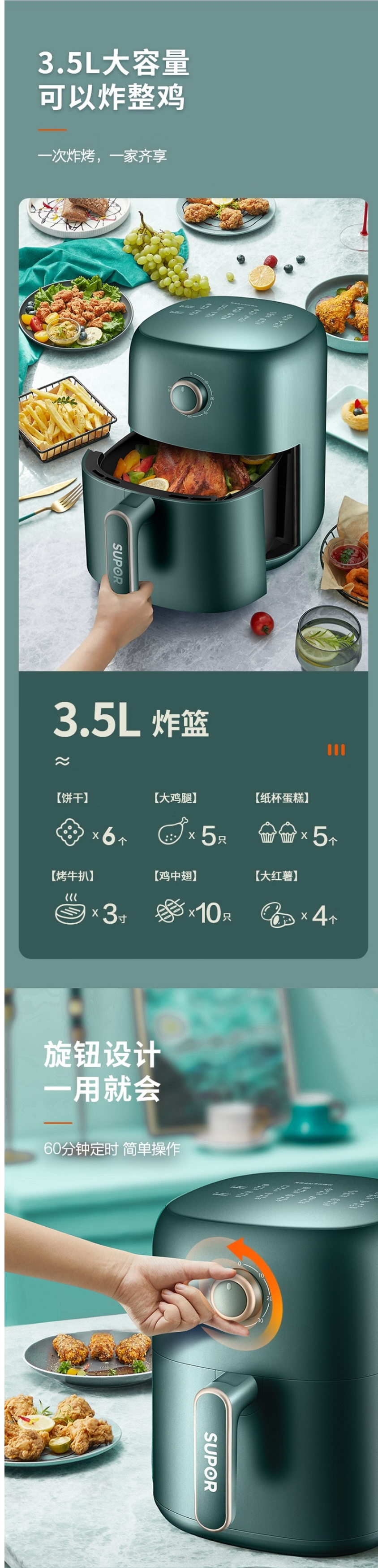 苏泊尔(SUPOR)ZMD安心系列 3.5L大容量 蒸汽嫩炸 1300W大功率 冷热风双循环系统空气炸锅KJ35D701 (仅限保定地区发货)京东万商