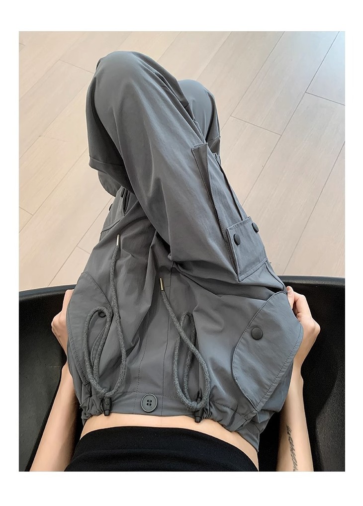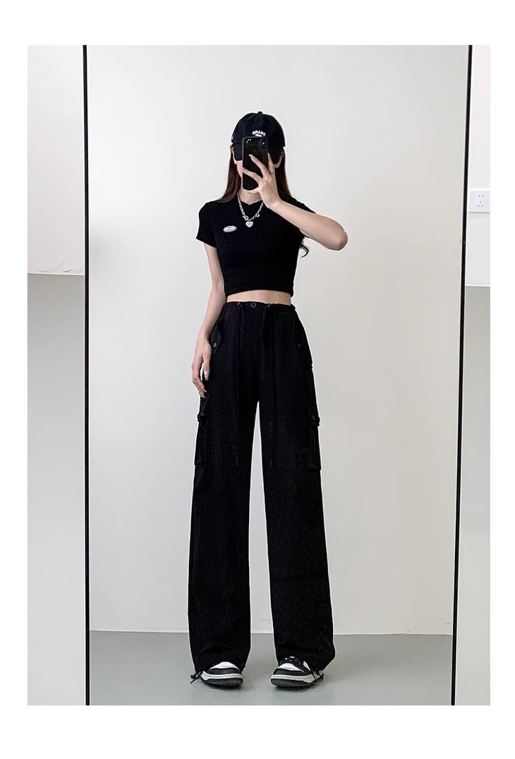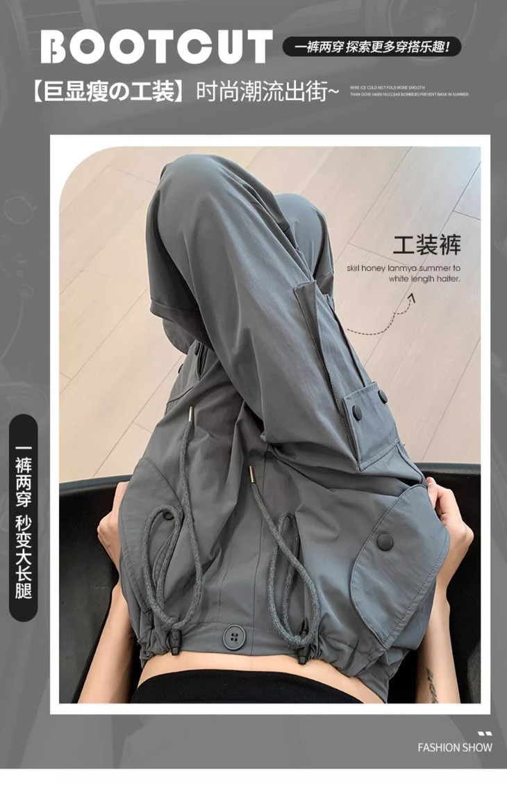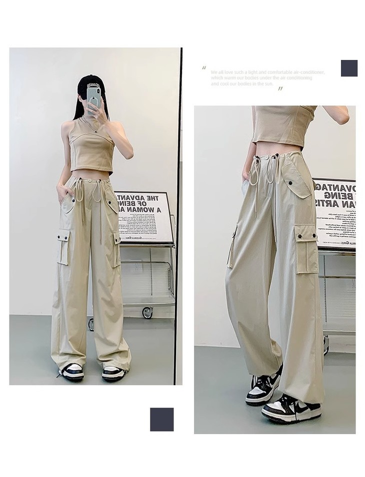 【夏季新款灰色工装裤】女酷飒风宽松直筒美式高腰阔腿速干运动裤