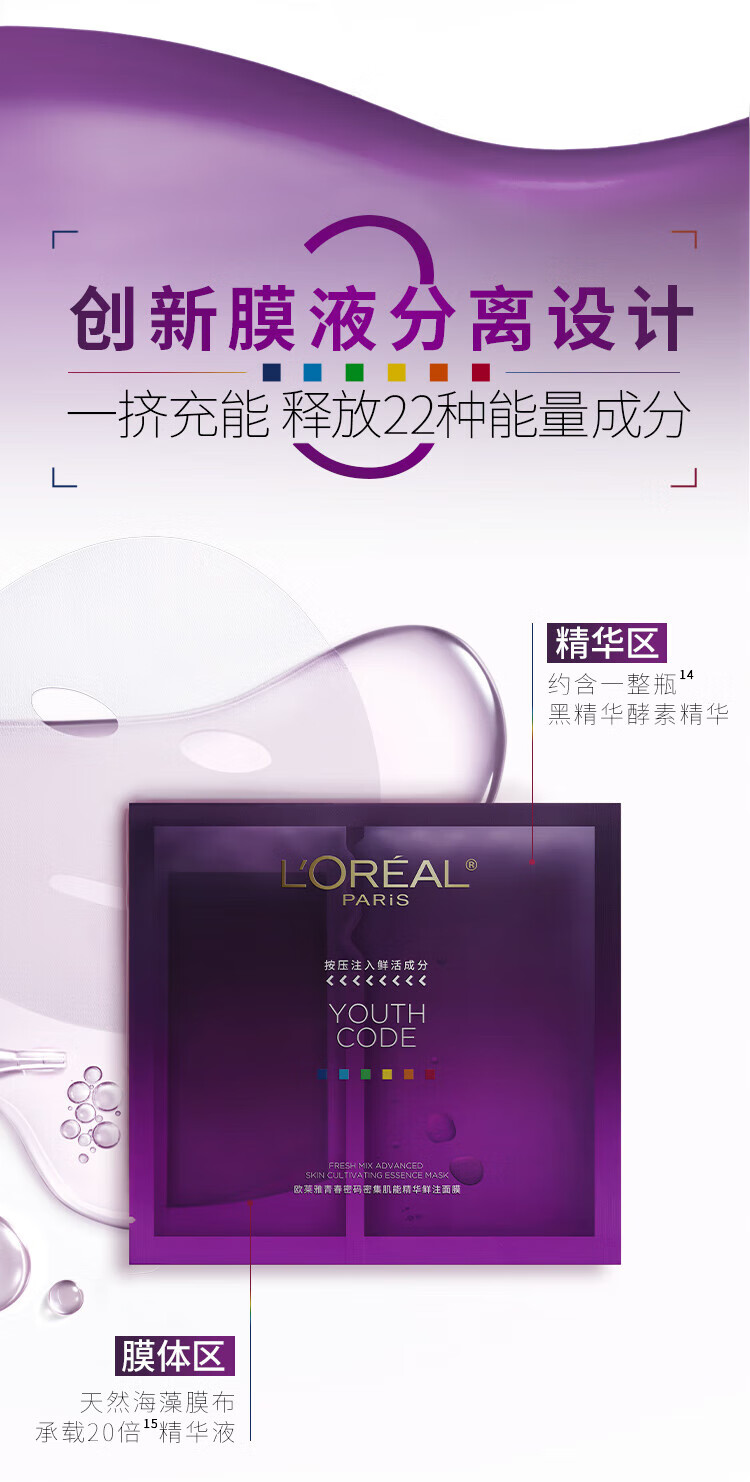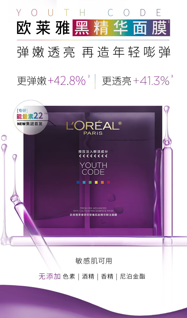 欧莱雅 青春密码酵素精华鲜注面膜33g×10片
