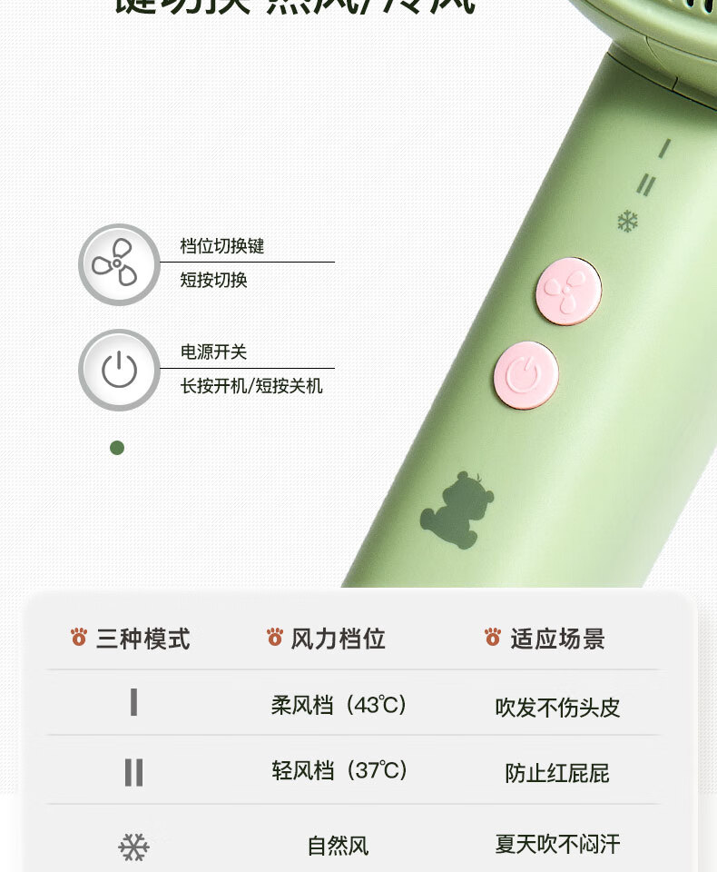 【儿童节】小白熊儿童吹风机轻音便捷恒温小白熊婴儿吹风机吹跑红屁屁HF