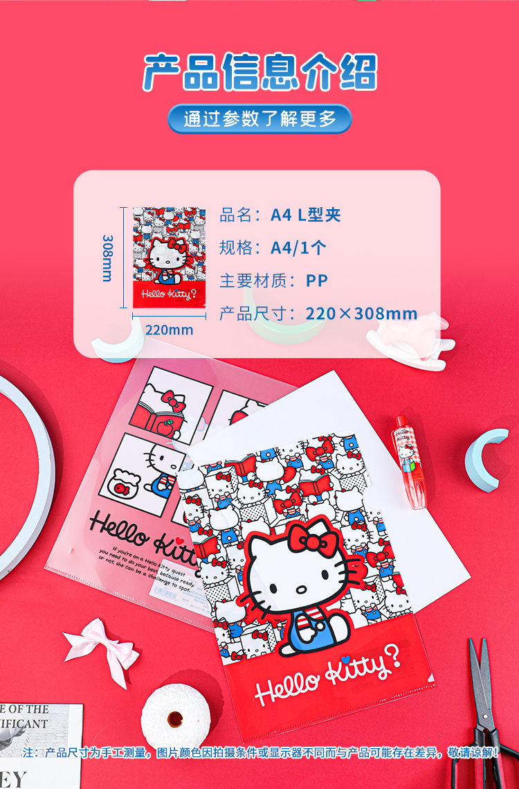 广博三丽鸥文具凯蒂猫A4L型文件夹小学生专用hellokitty分类收纳袋试卷夹试卷整理夹乐谱夹办公用品/花色随机