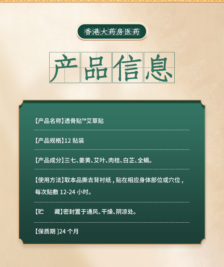 甄选好料草本呵护【香港大药房,艾草透骨贴!】草本植萃传承古方,透骨贴艾灸贴膝盖颈椎腰椎,热敷自发热艾草贴发热贴-lm!ry