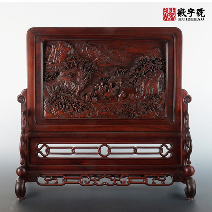 徽字号红木雕刻屏风酸枝木插屏简座小屏风工艺品摆件