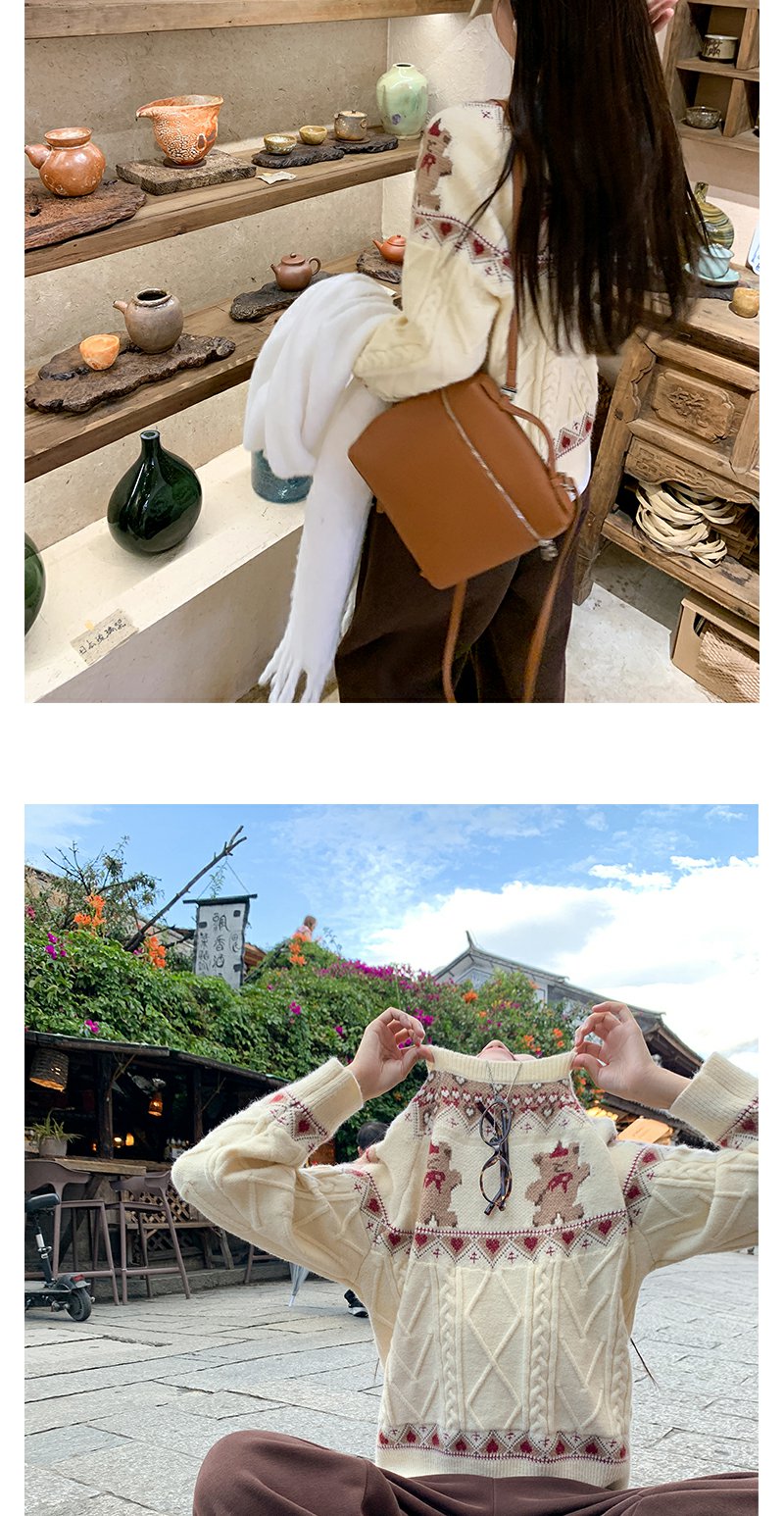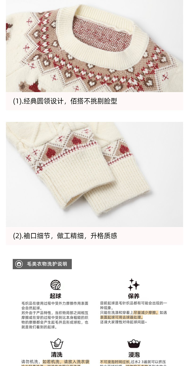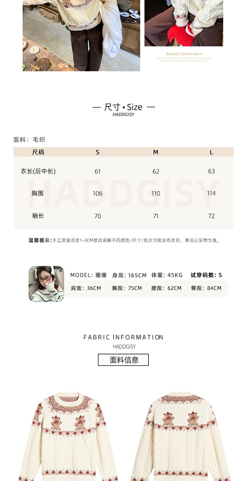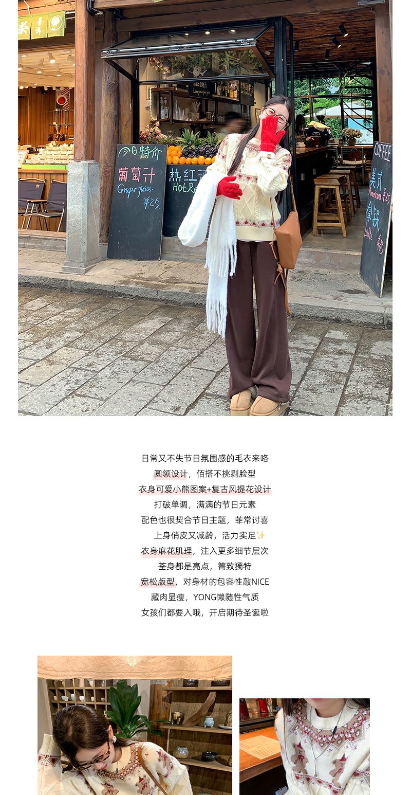 【189元任选2件】最后一波现货!复古圣诞氛围感杏色小熊提花毛衣
