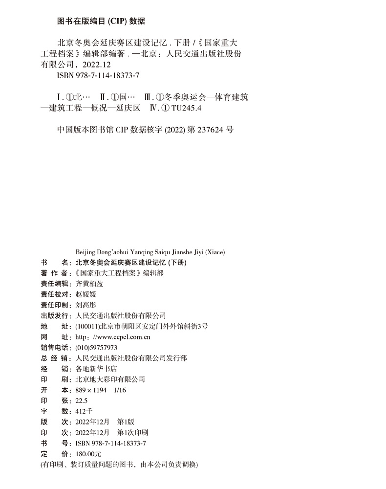 书名:北京冬奥会延庆赛区建设记忆(下册)