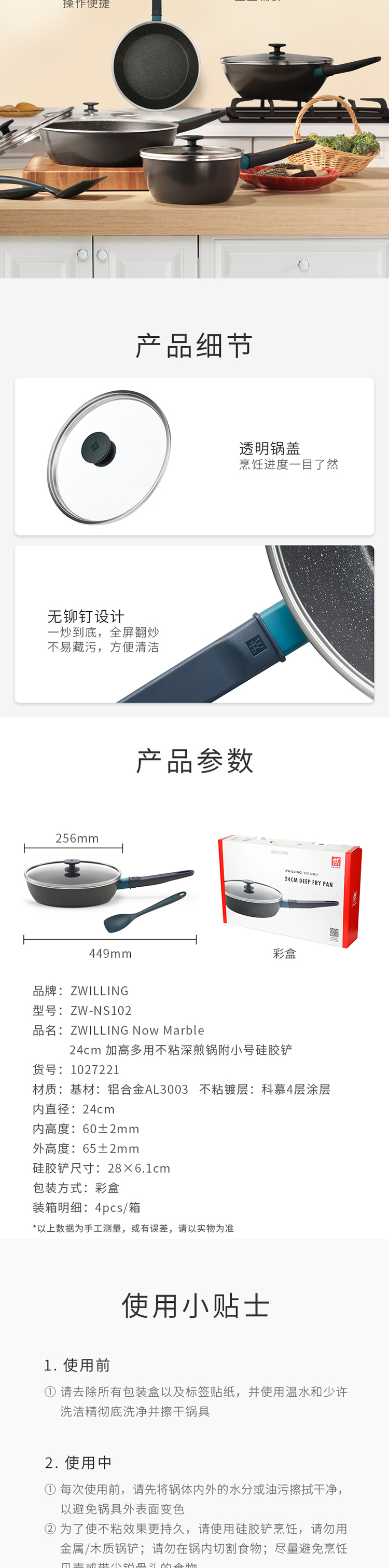 双立人ZWILLING Now Marble 24cm加高多用不粘深煎锅附小号硅胶铲 ZW-NS102