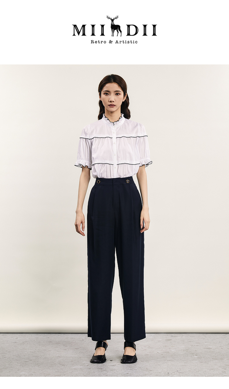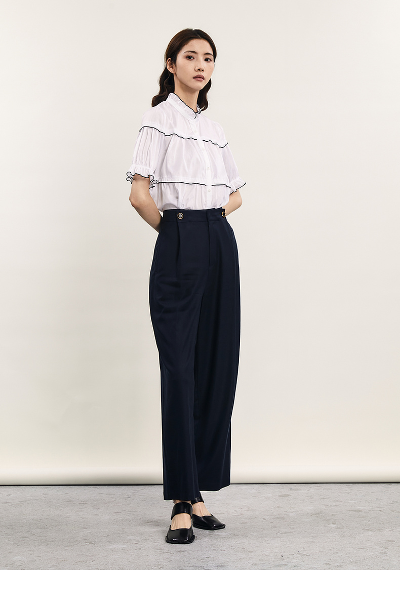 谜底休闲裤长裤女2024年夏季新品通勤风气质宽松阔腿裤242MK0687