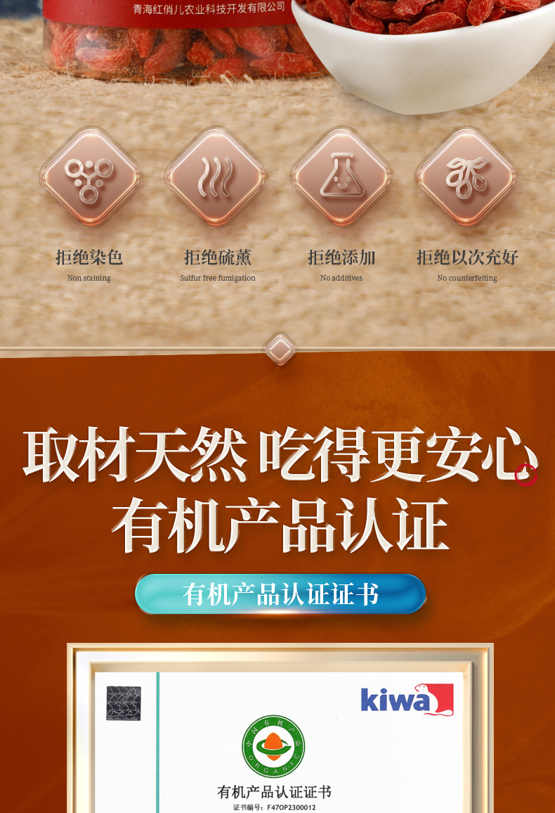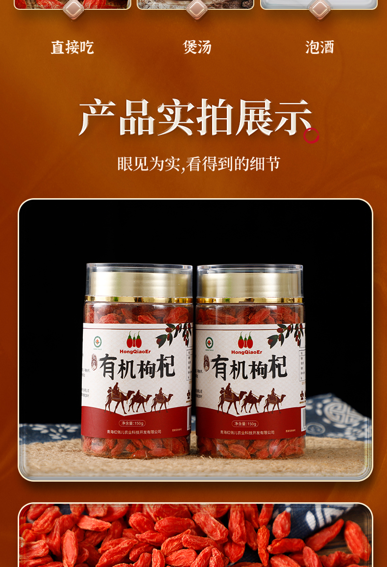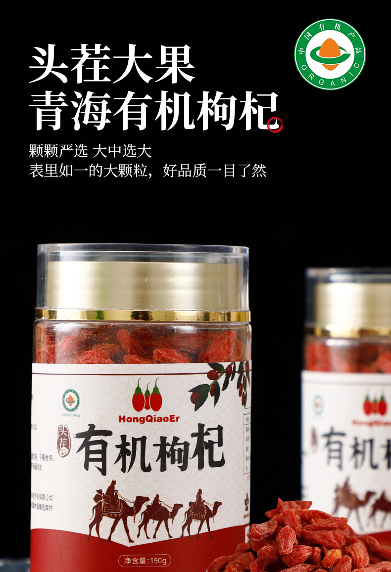 红俏儿 有机红枸杞 青海高原头茬枸杞子 无熏硫滋补泡水枸杞茶 150g瓶装