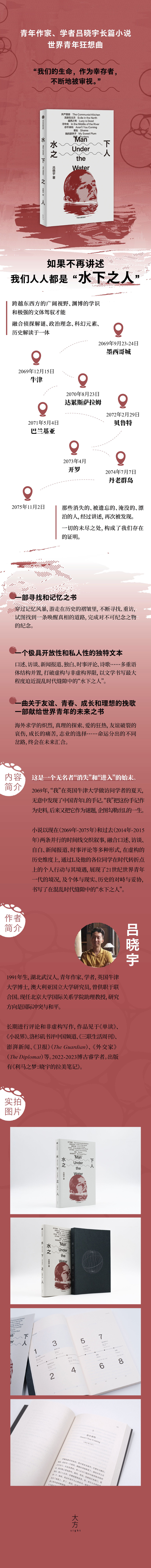 2069年,“我”在英国牛津大学做访问学者的夏天,无意中发现了L的手记。“我”把这份手记作为史料,后来又把它作为谜题,企图勾勒出L的一生。小说以现在(2069年-2075年)和过去(2014年-2015年)两条并行的时间线交织叙事,融合口述、访谈、自白、时事评论等多种形式,在虚构的历史维度上,通过L及他的各位同学在时代转折点上的个人行动与其境遇,展现了21世纪世界青年一代的境况,及个体与现实、历史的对峙与妥协,书写了在混乱时代缝隙中的“水下之人”。