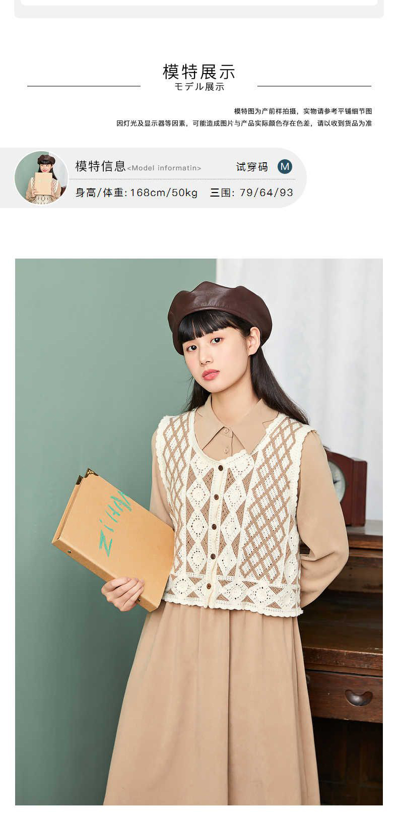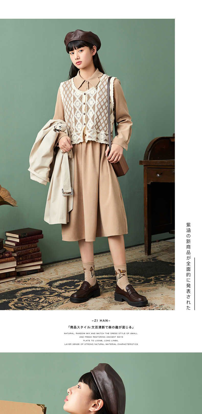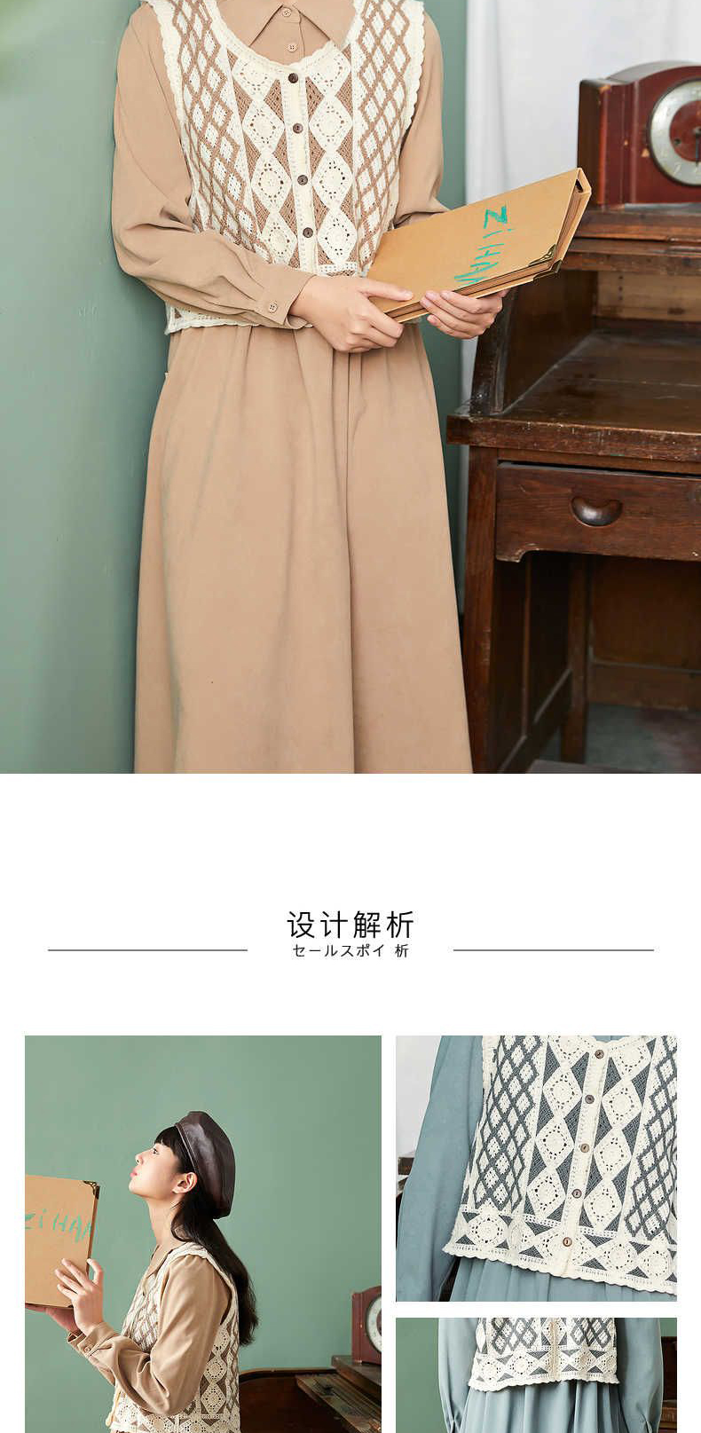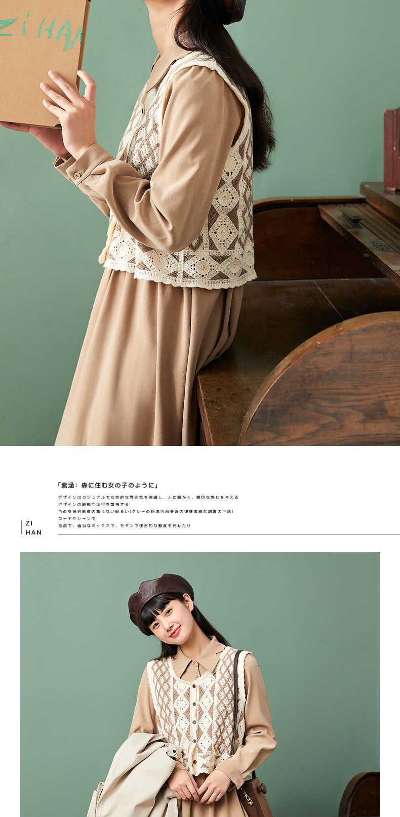 ZIHAN紫涵森系仙女连衣裙套装2022春季新款森系翻领裙子勾花马甲两件套Z2Z01AS138