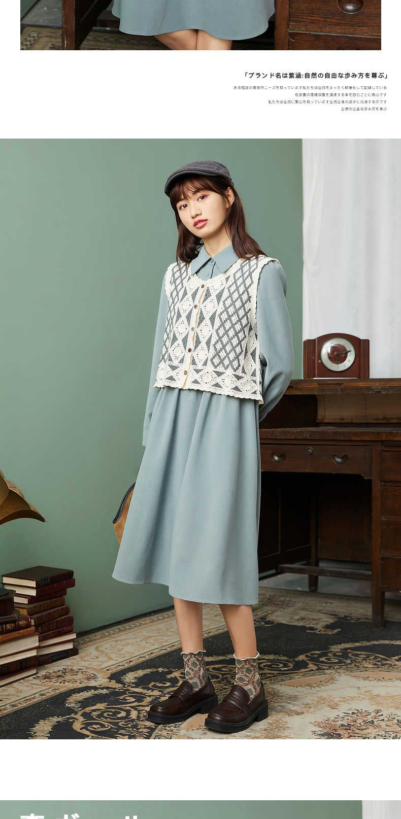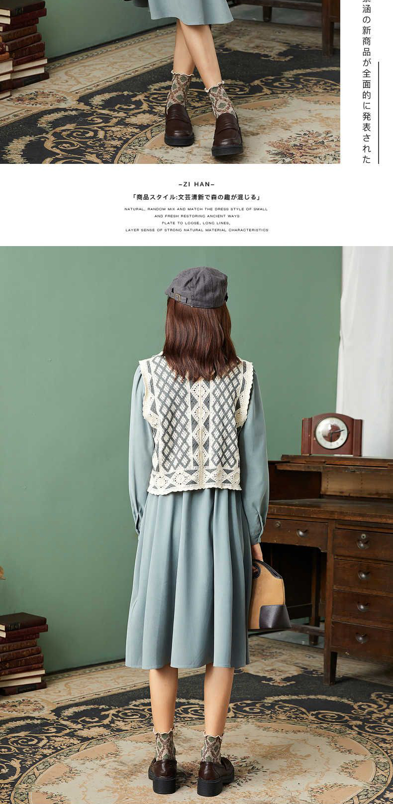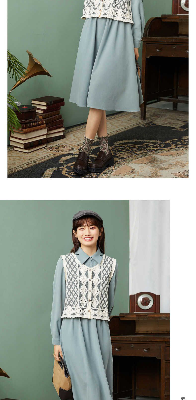 ZIHAN紫涵森系仙女连衣裙套装2022春季新款森系翻领裙子勾花马甲两件套Z2Z01AS138