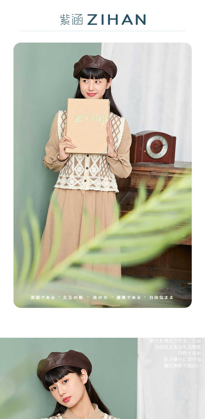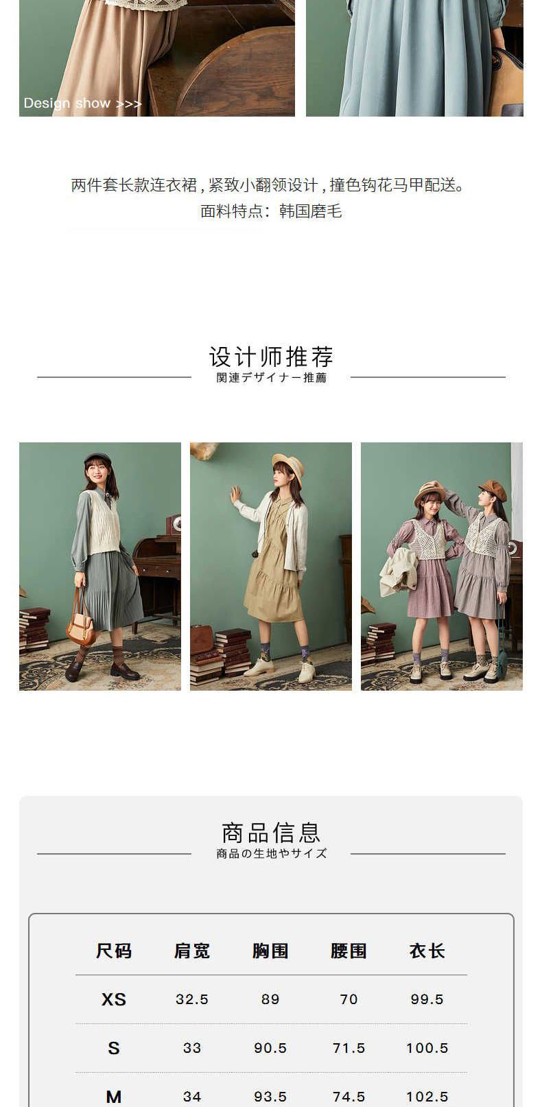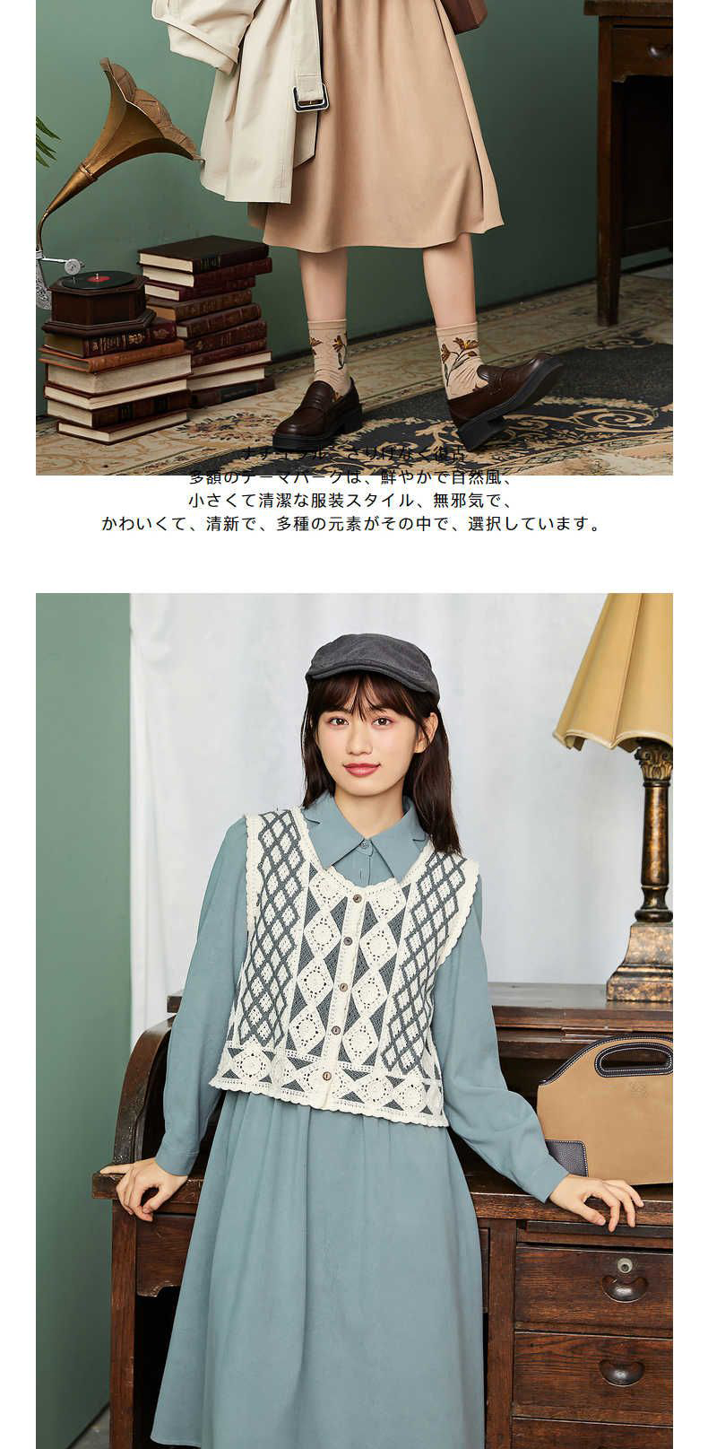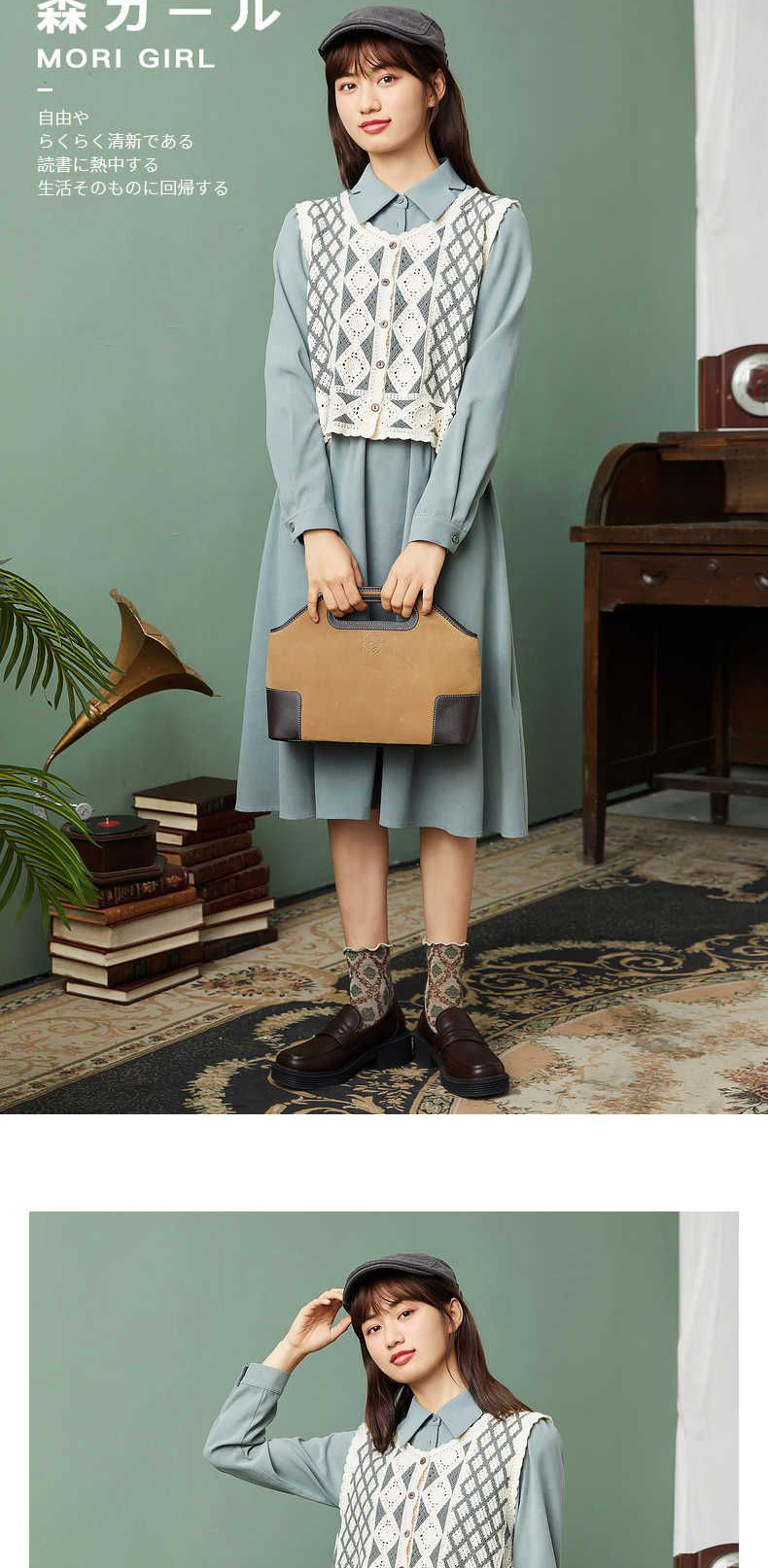 ZIHAN紫涵森系仙女连衣裙套装2022春季新款森系翻领裙子勾花马甲两件套Z2Z01AS138