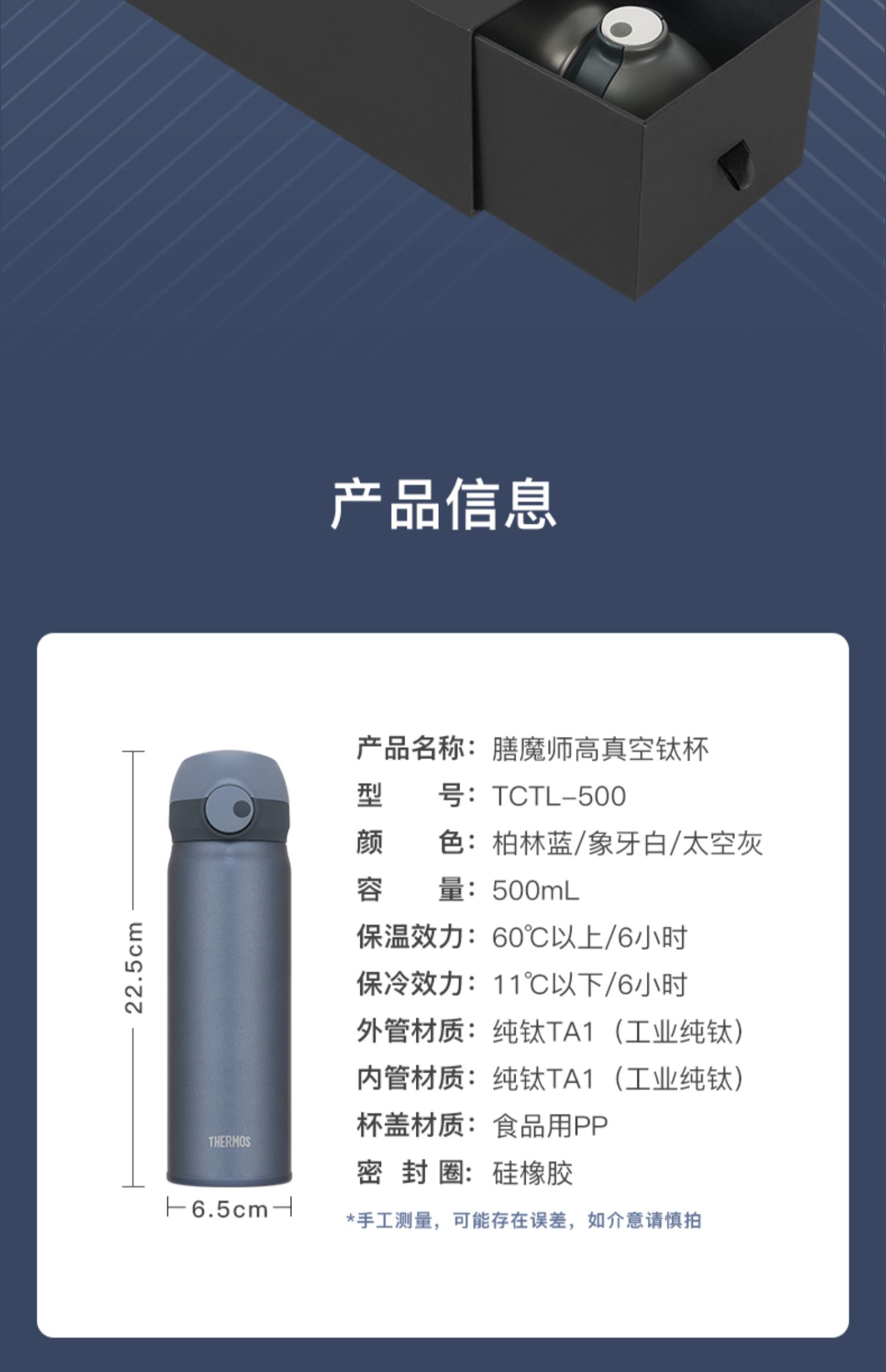 膳魔师钛杯简约超轻纯钛磁力系列保温杯礼盒装TCTL-500