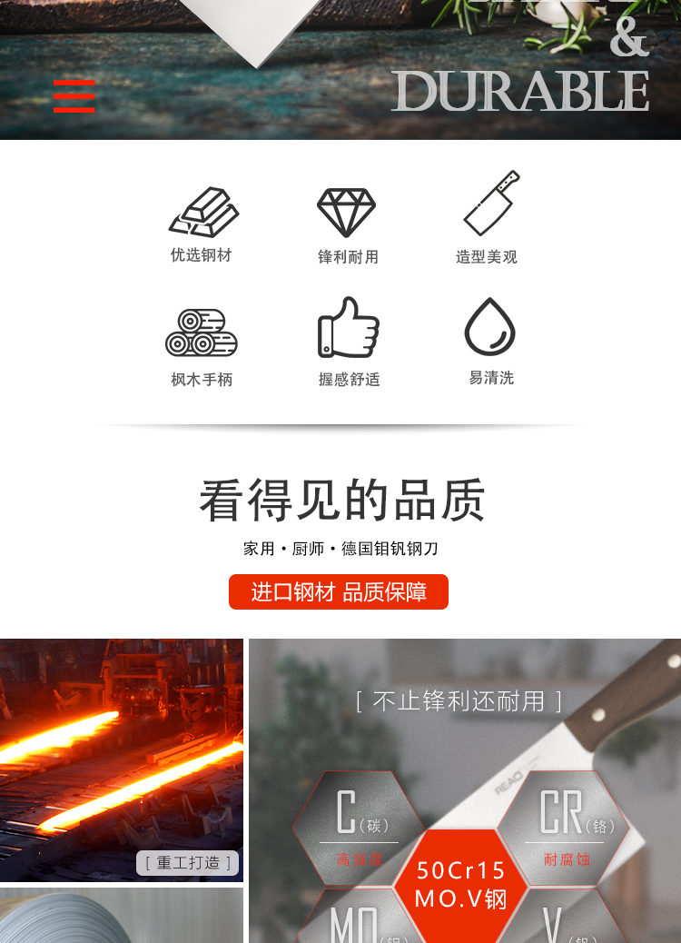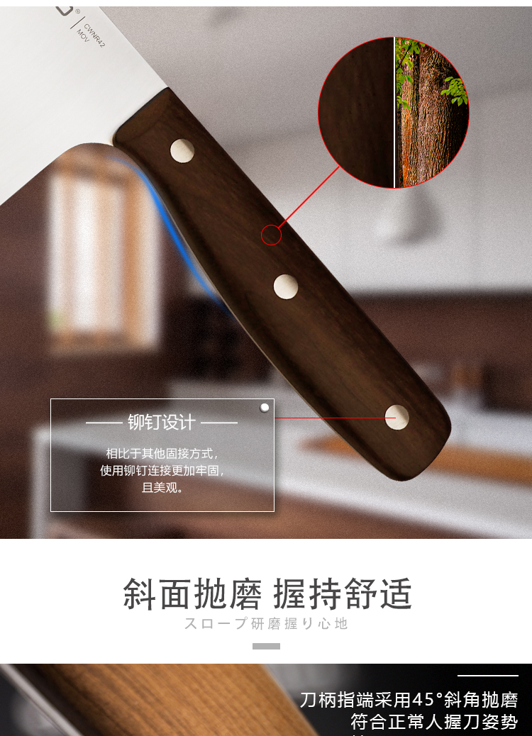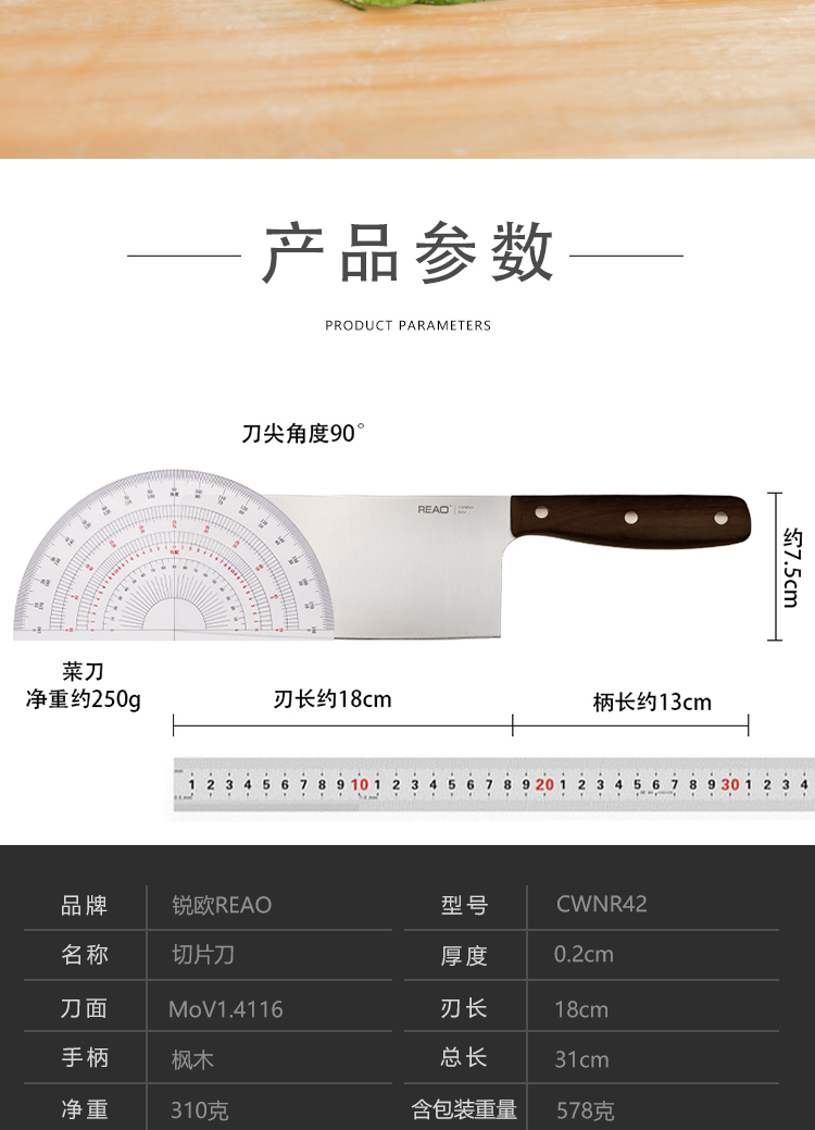 锐欧乐享系列枫木手柄不锈钢切片刀