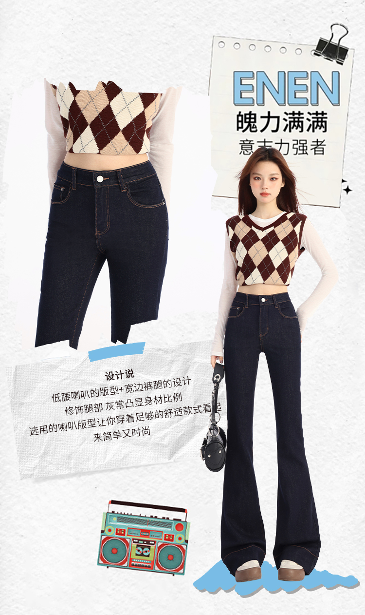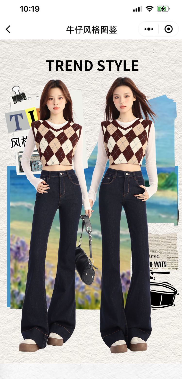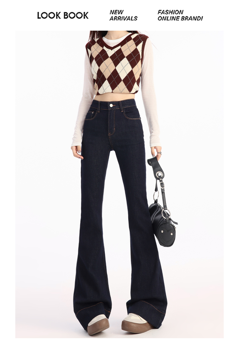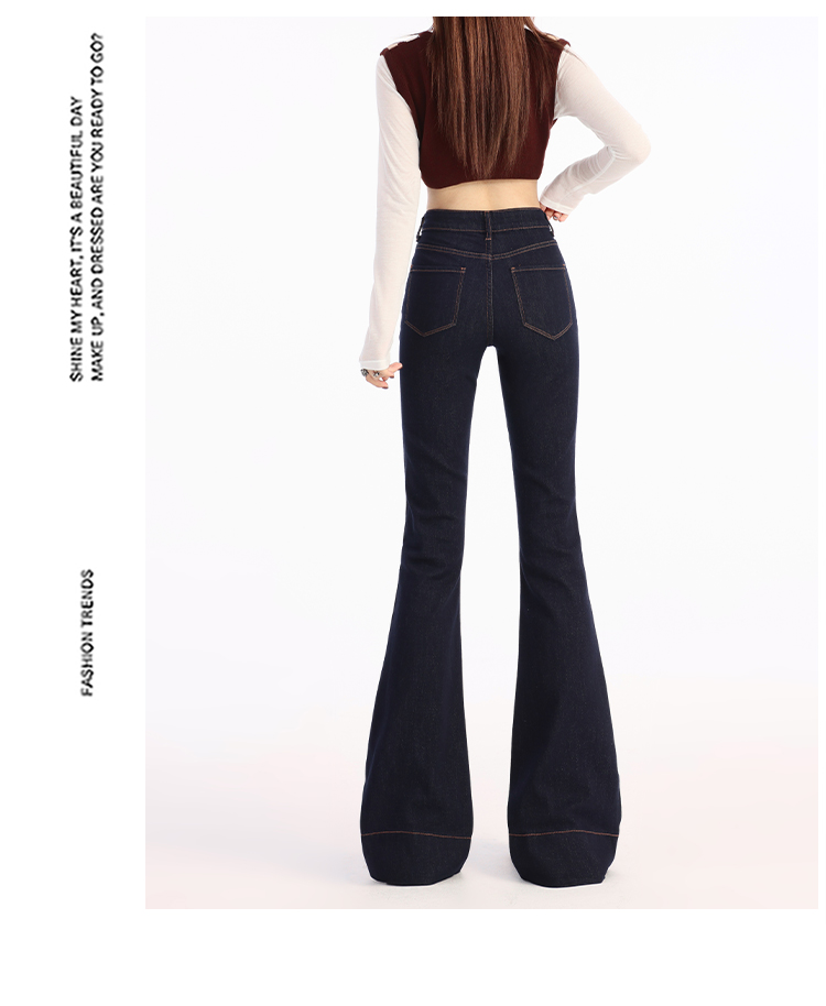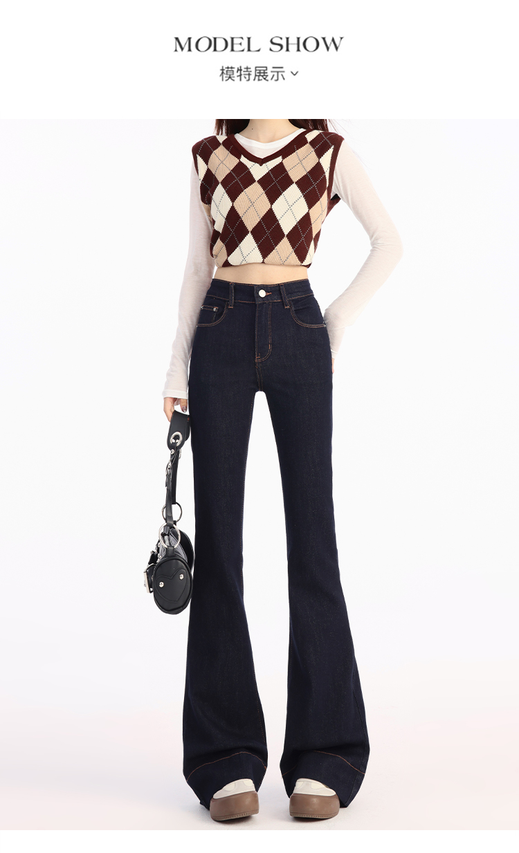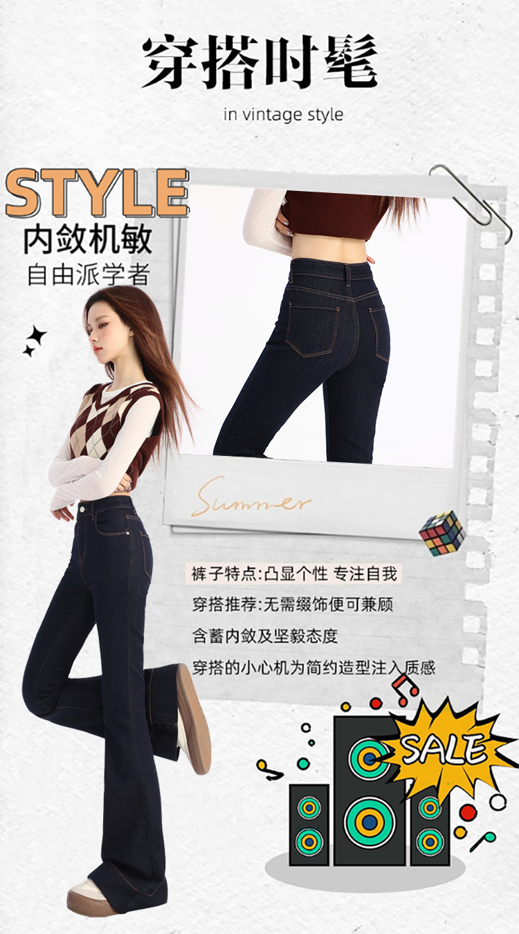 罗蒙春夏女式牛仔裤高腰修身显瘦喇叭裤女士时尚潮流百搭长裤