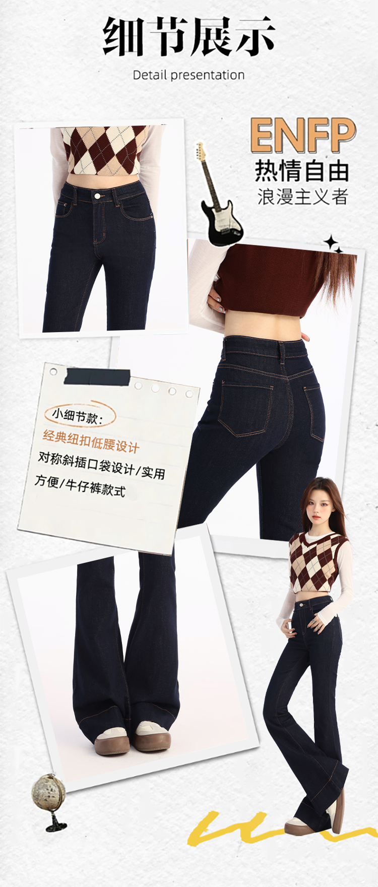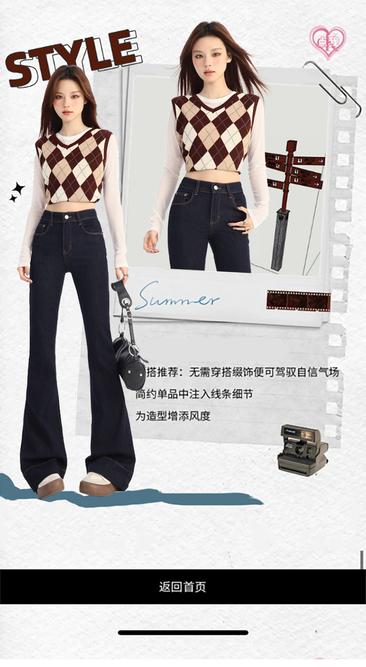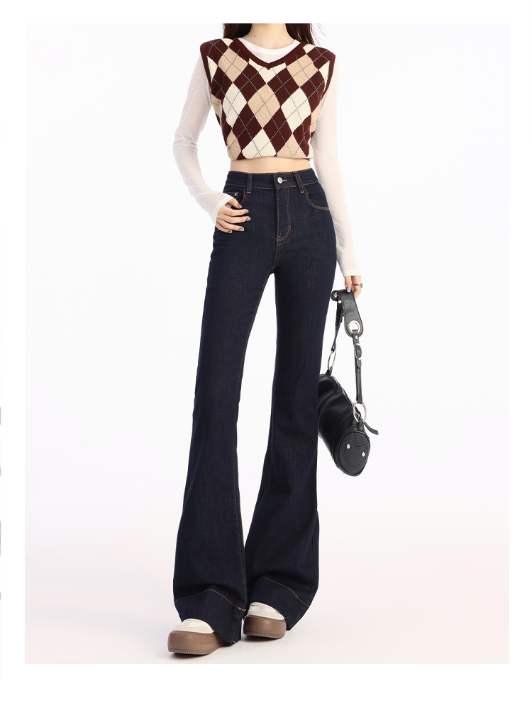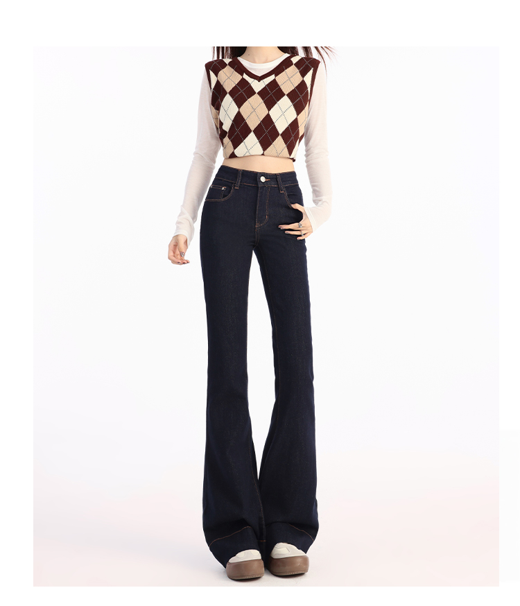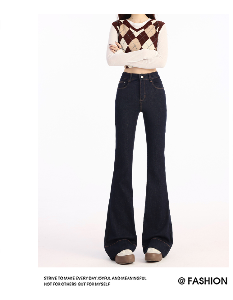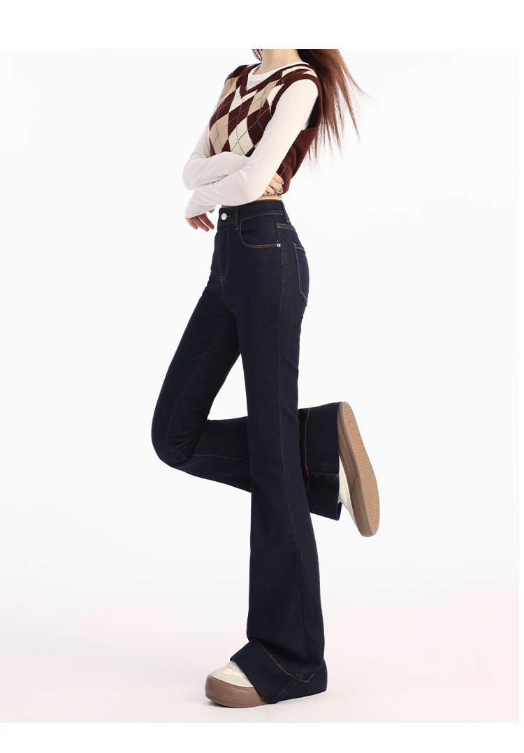 罗蒙春夏女式牛仔裤高腰修身显瘦喇叭裤女士时尚潮流百搭长裤