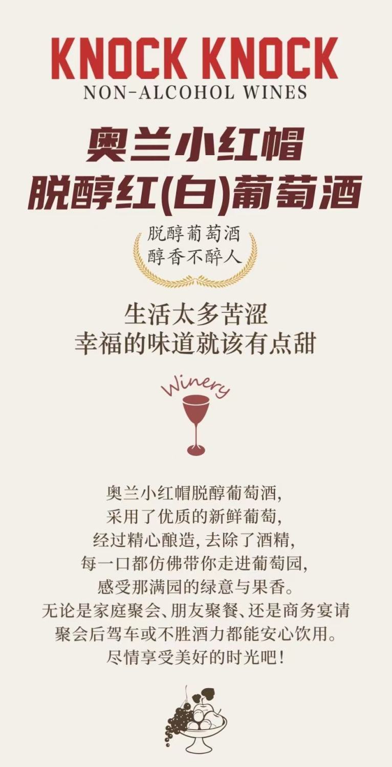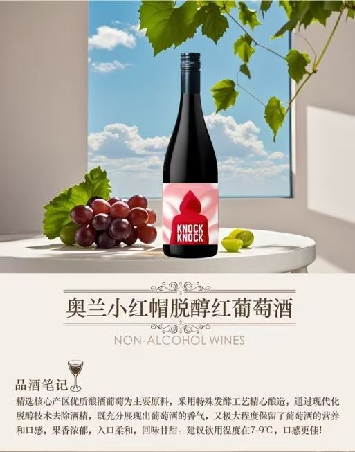 奥兰小红帽脱醇红葡萄酒 酒精度0.5度 整箱750ml*6瓶包邮