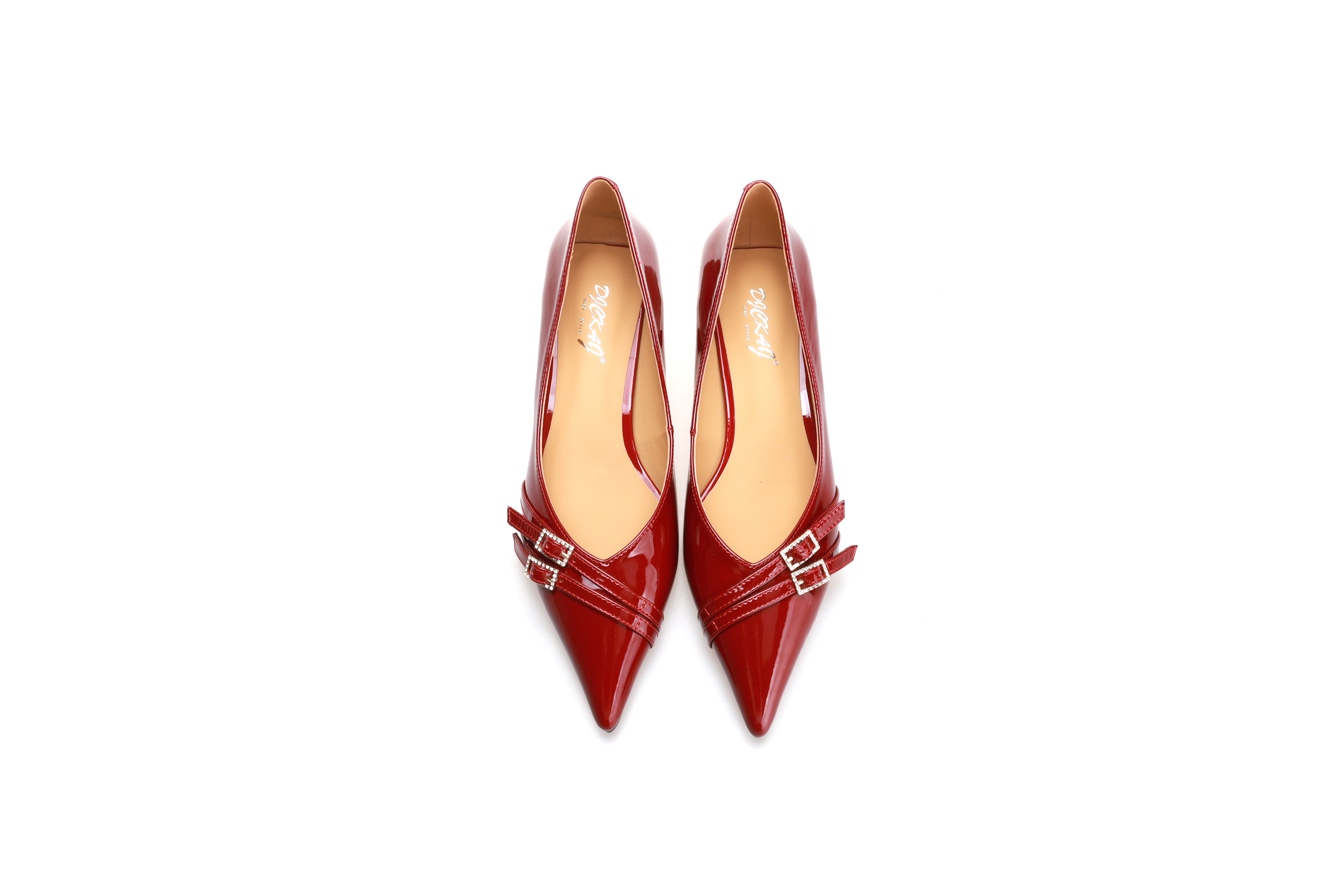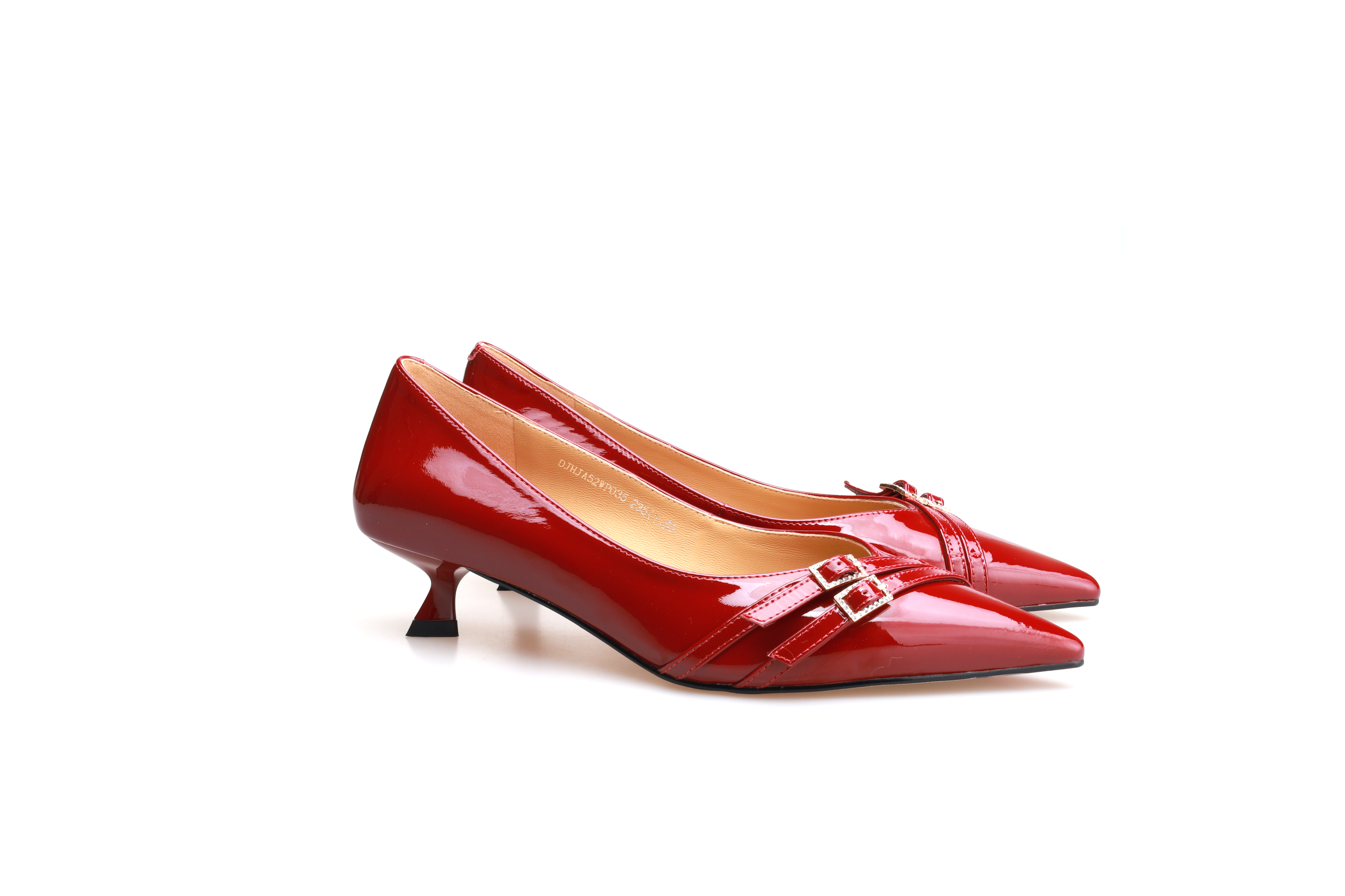 豪麟名鞋迪嘉女鞋皮鞋牛移膜革DJHJA52WP035酒红色