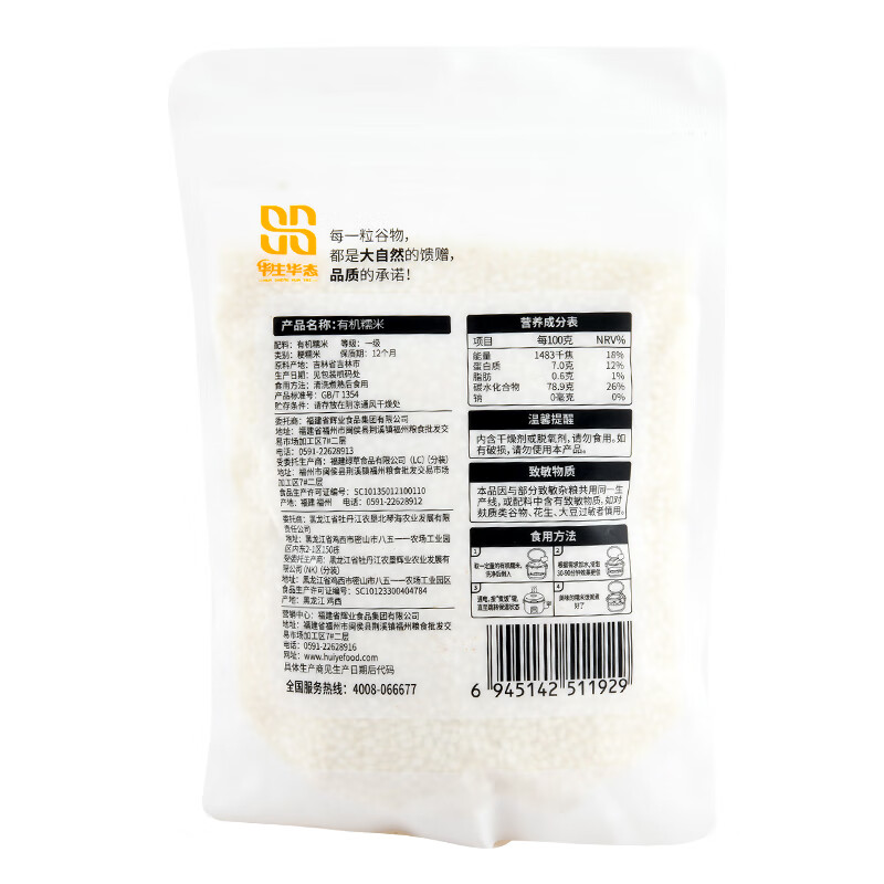 华生华态-有机圆糯米 400g/袋