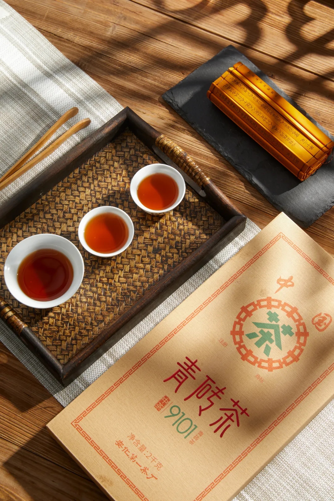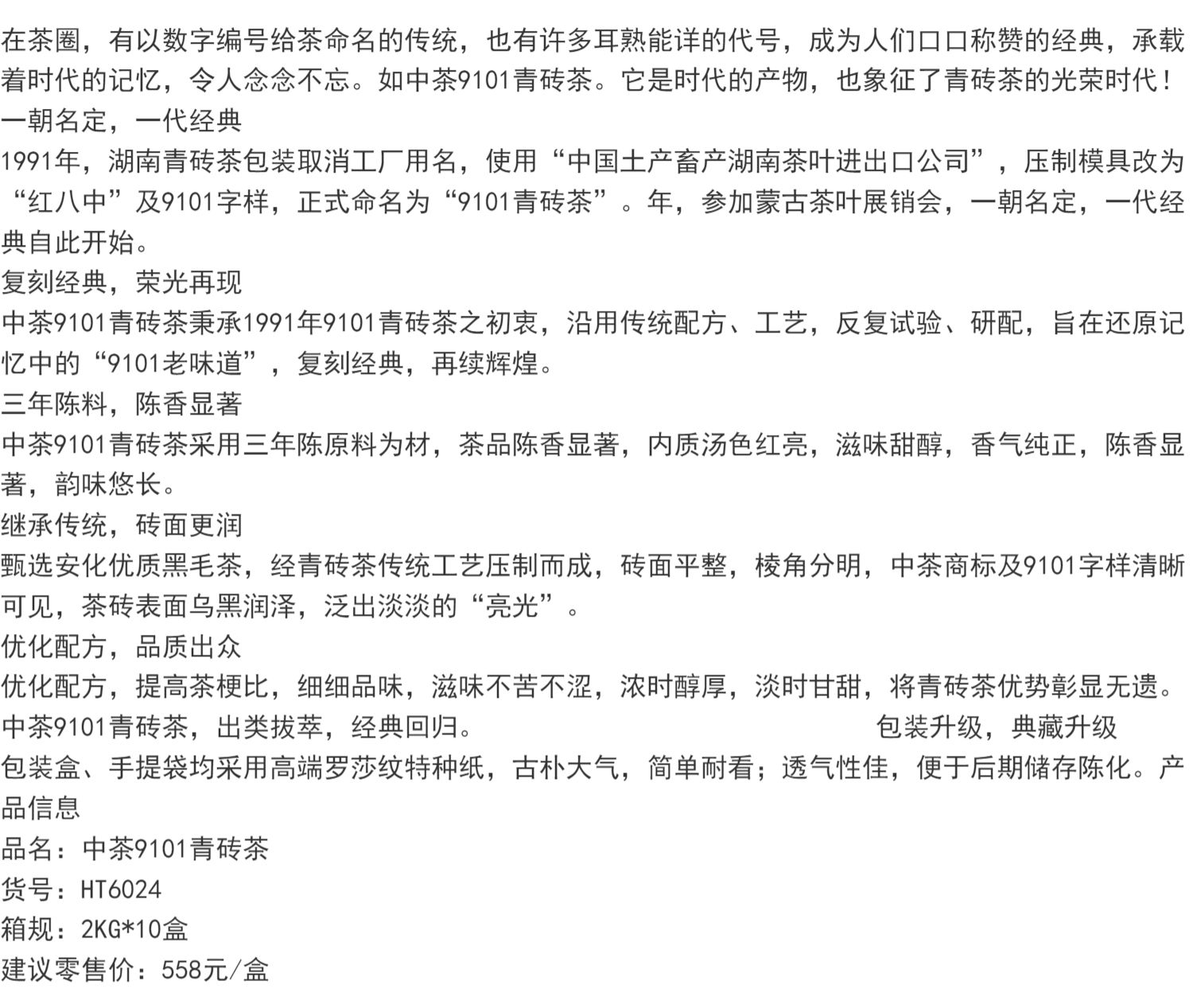 中粮-中茶湖南安化黑茶青砖茶9101收藏茶2kg/金花饱满/原产地直发