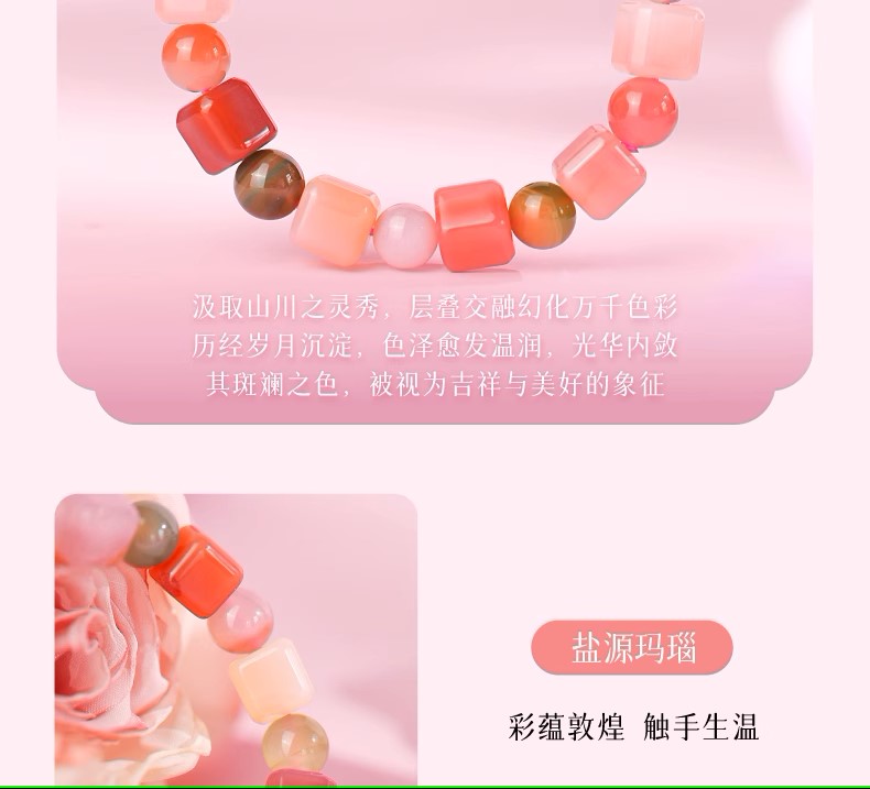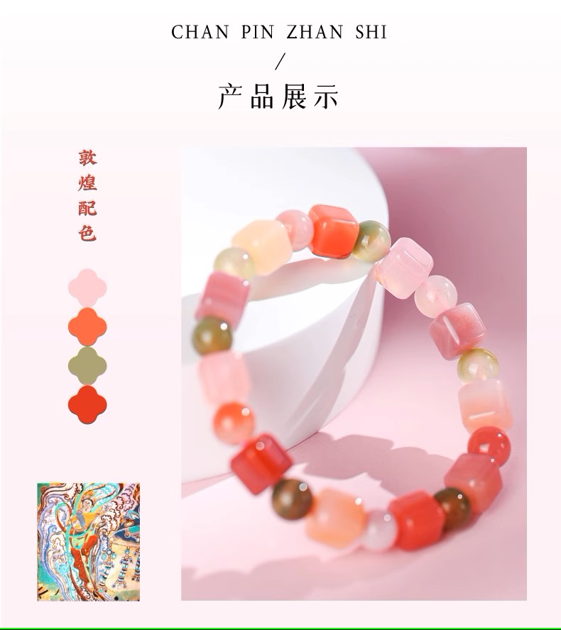 敦煌研究院盐源玛瑙方糖手串 小清新手链多巴胺手串玛瑙手串精致