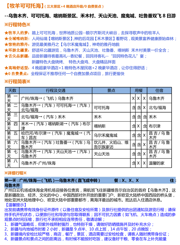 【牧羊可可托海】(三大景区+4晚酒店升级/0自费景点) --乌鲁木齐、可可托海、喀纳斯景区、禾木村、天山天池、魔鬼城、吐鲁番双飞8日游