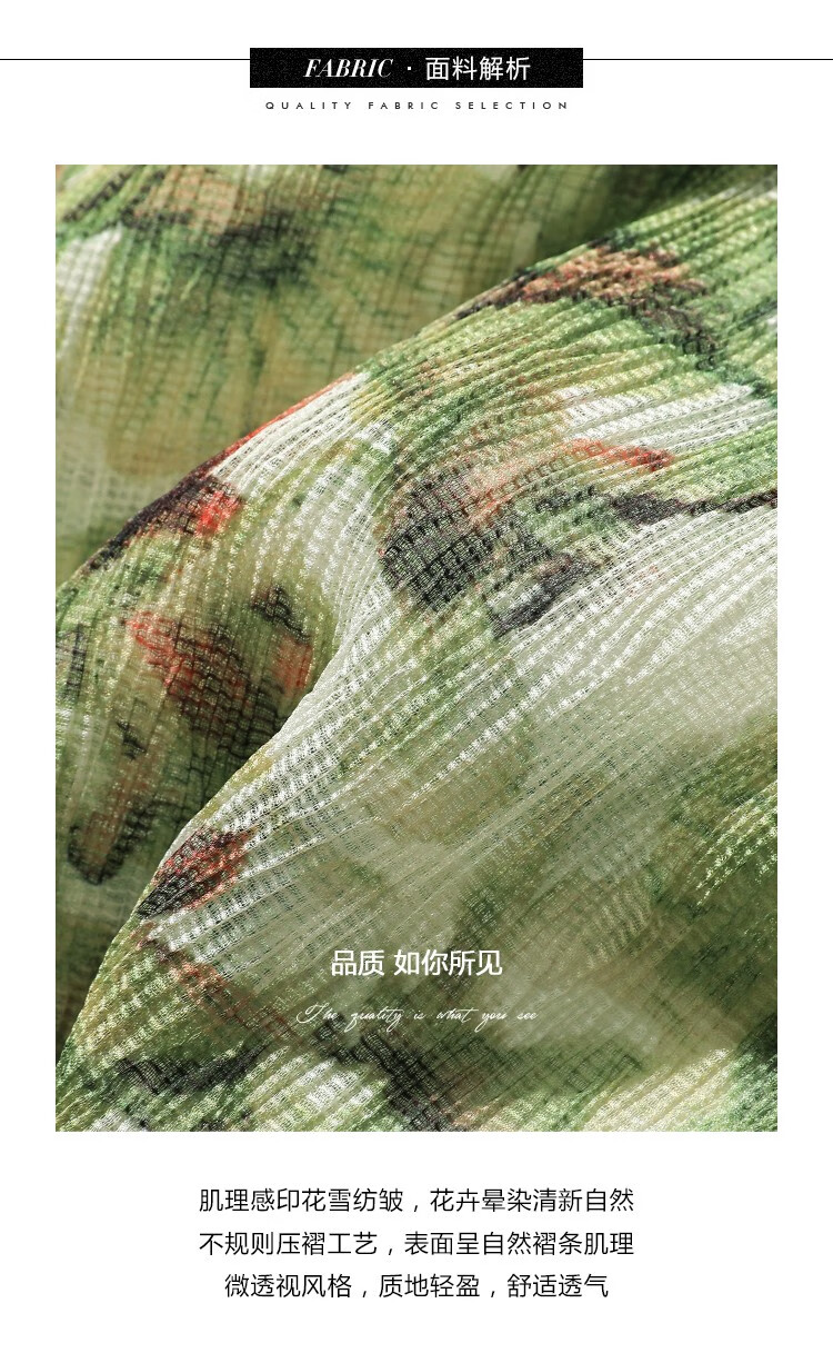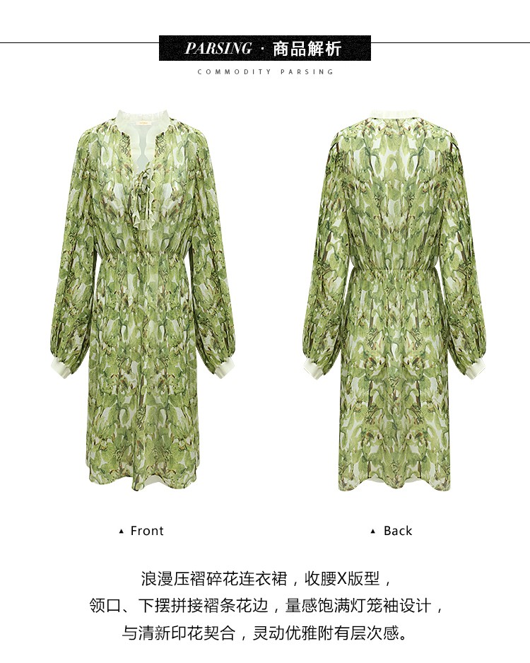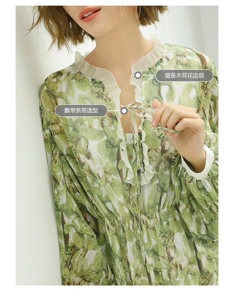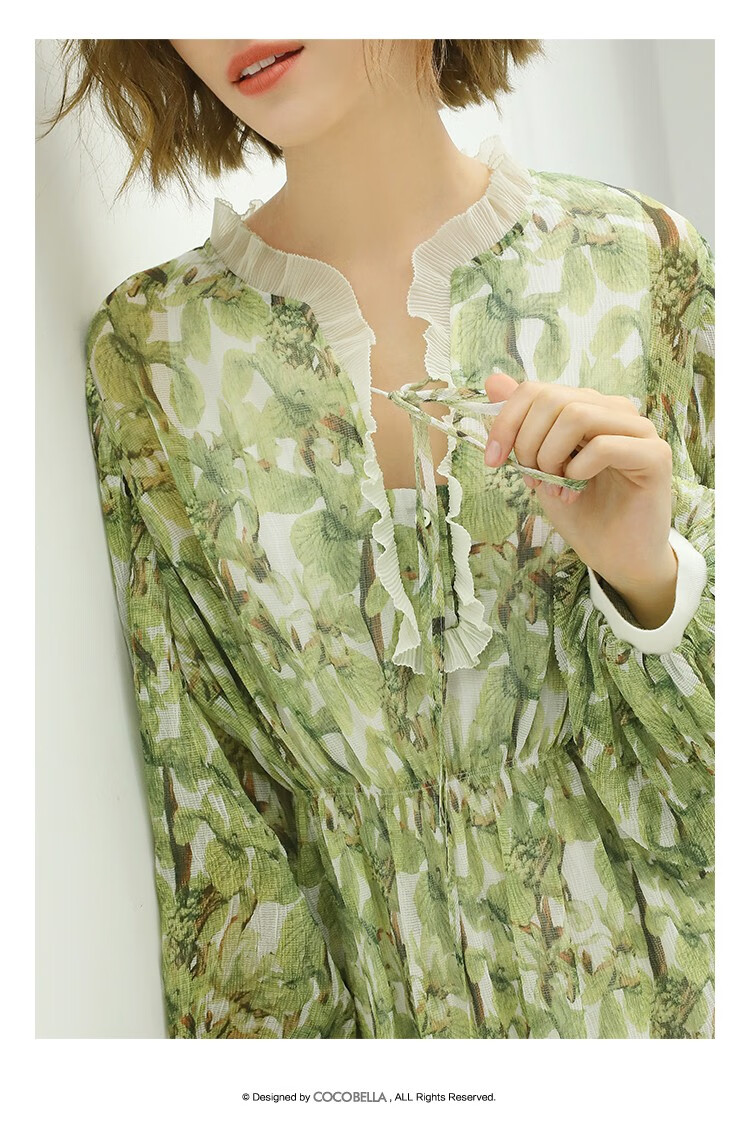 【限时秒杀】COCOBELLA肌理感压褶花卉印花连衣裙女优雅高腰长袖雪纺裙FR512