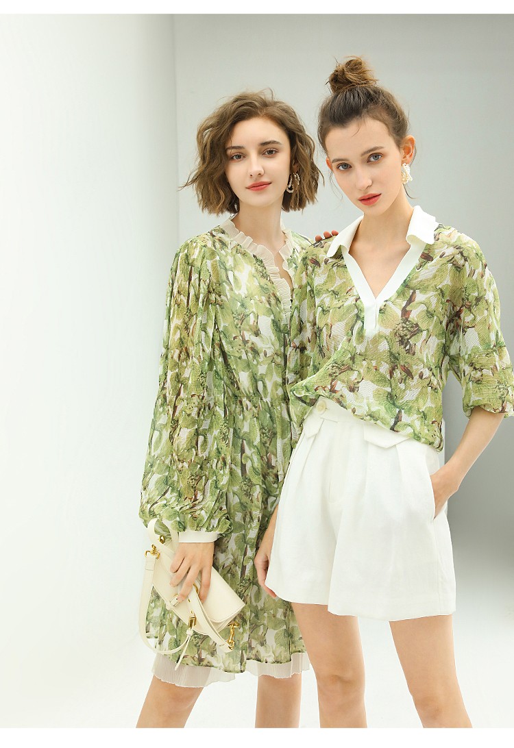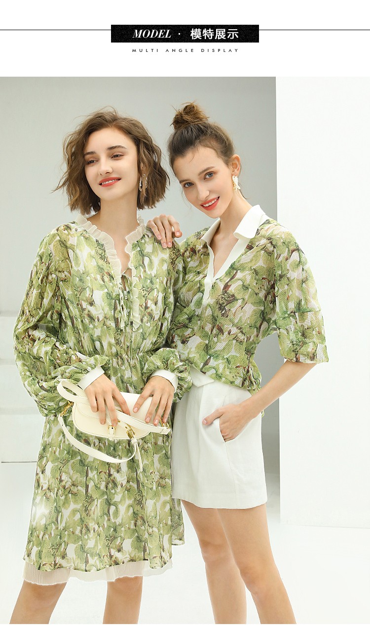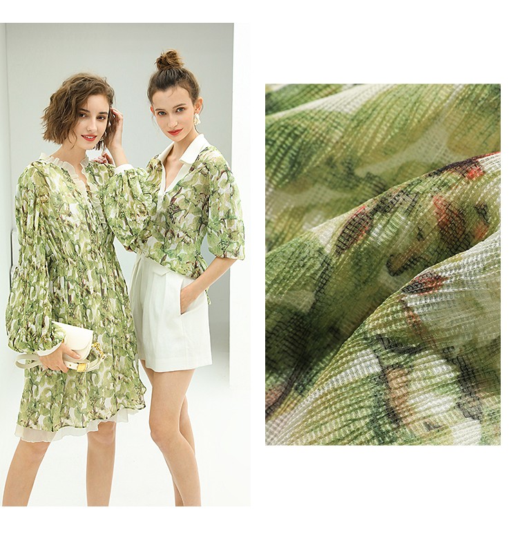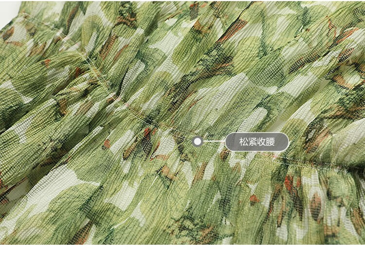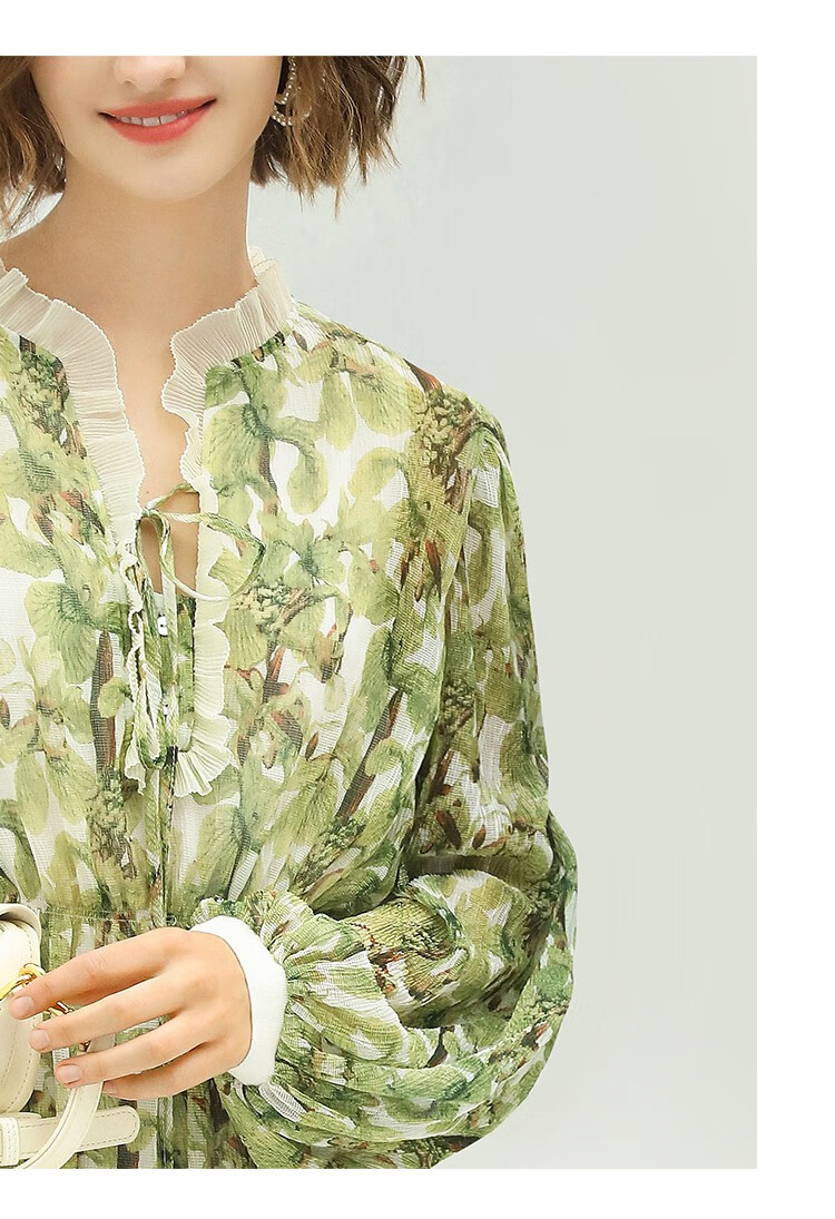 【限时秒杀】COCOBELLA肌理感压褶花卉印花连衣裙女优雅高腰长袖雪纺裙FR512