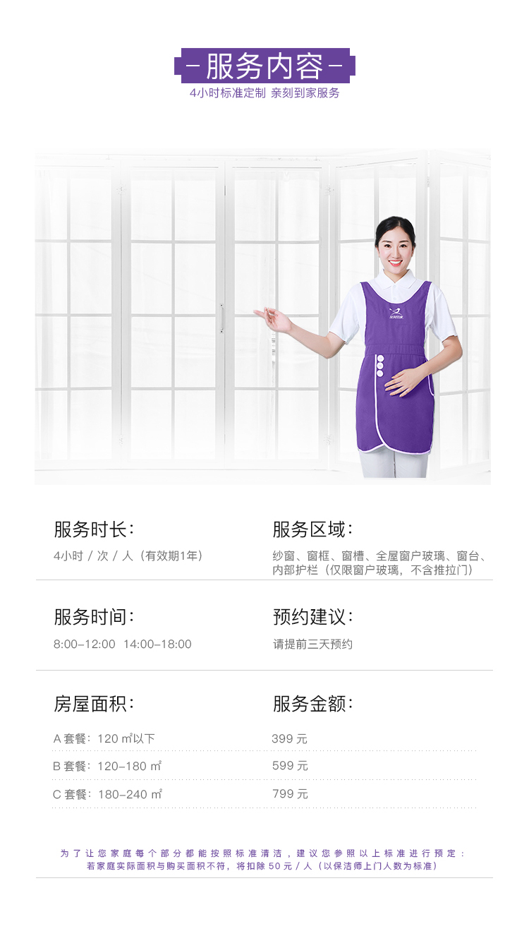 全屋精细擦窗A套餐 内外玻璃擦洗(仅限广州市,不含花都、从化)