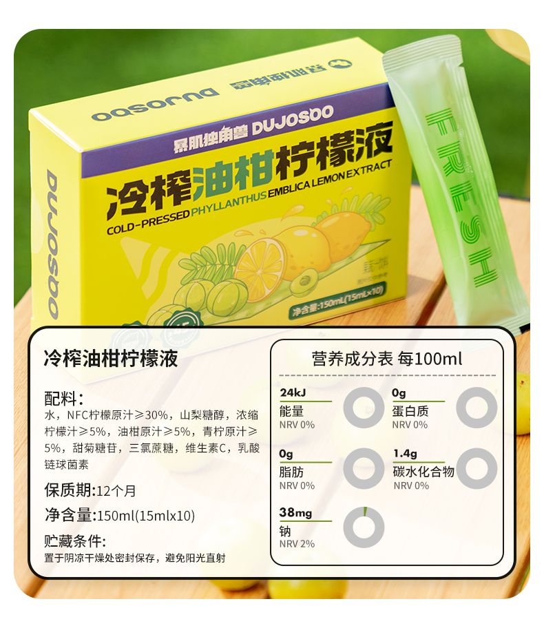 【暴肌独角兽】冷榨油杆柠檬液150g0脂柠檬汁饮品冲饮料独立包装
