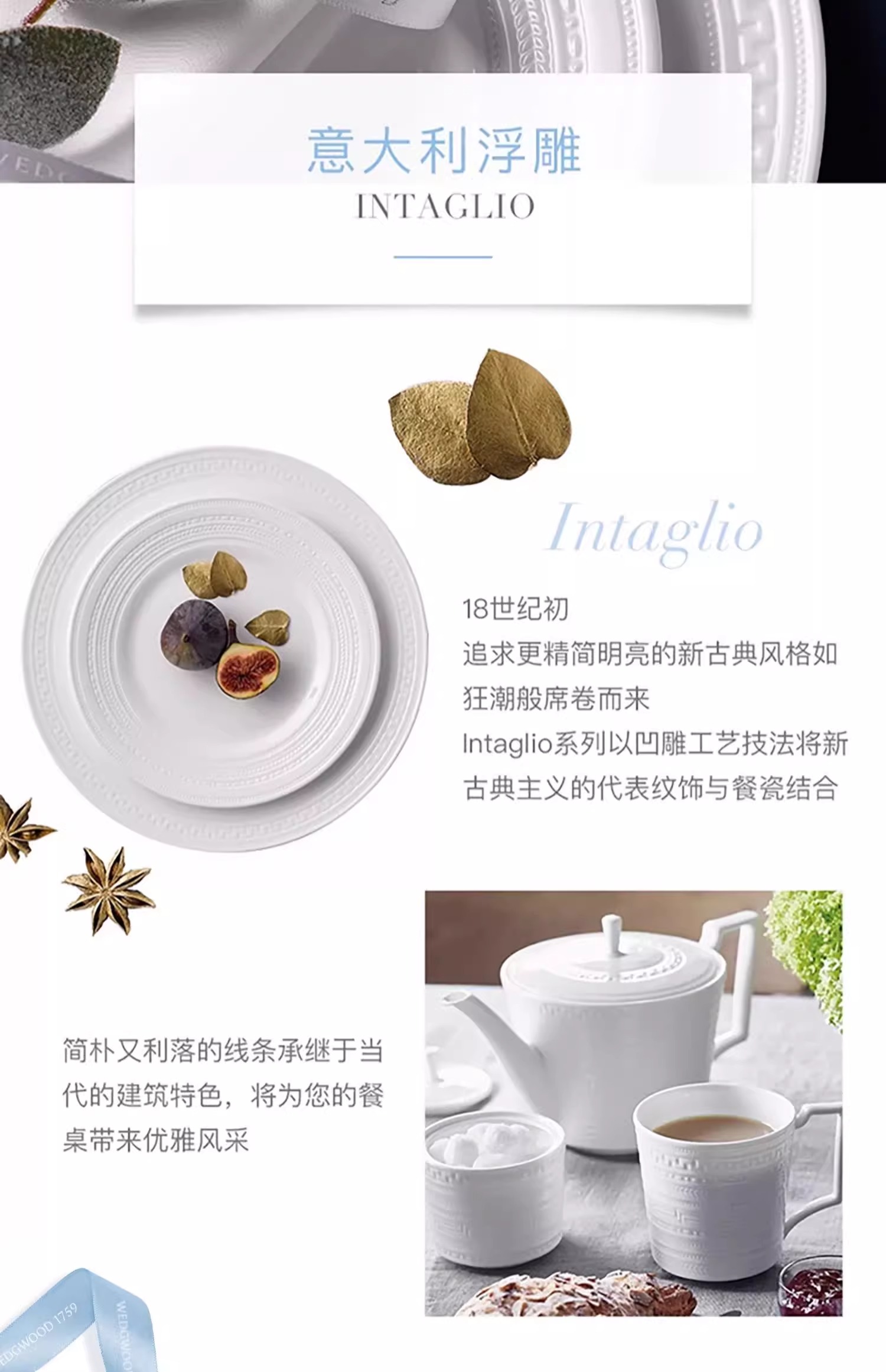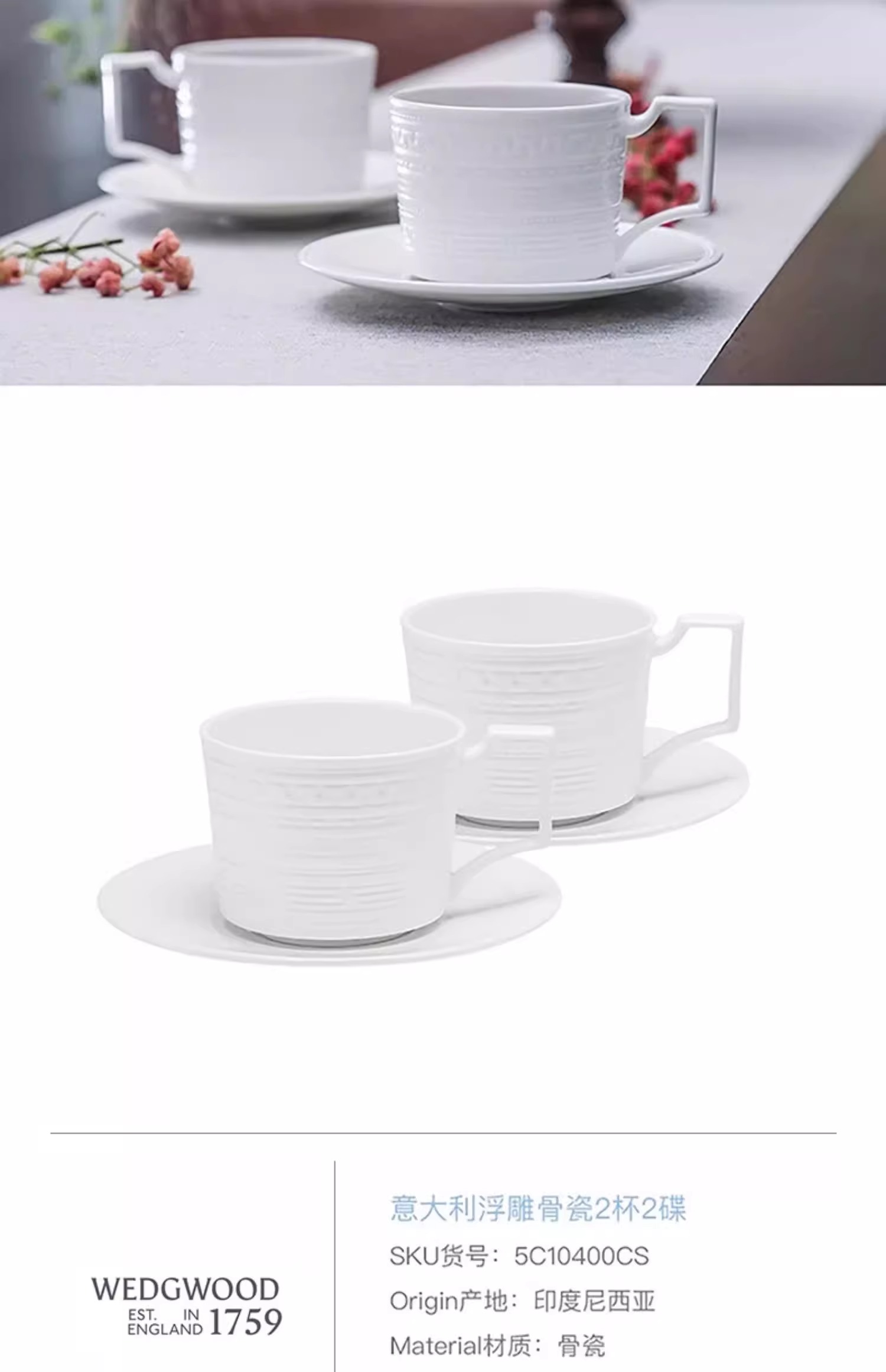 WEDGWOOD威基伍德意大利浮雕杯碟礼盒装骨瓷咖啡杯碟茶杯碟送礼威基伍德意大利浮雕2杯2碟套装