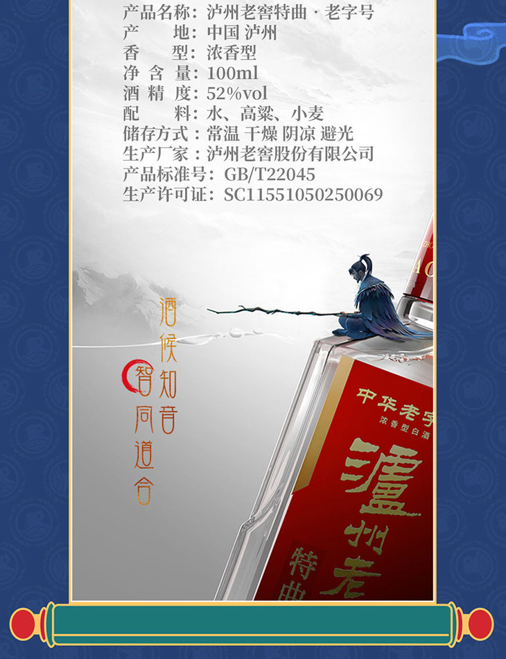 【泸州老窖官方形象店】52度泸州老窖 中华老字号特曲 500ml 单瓶(第九代) 浓香型白酒