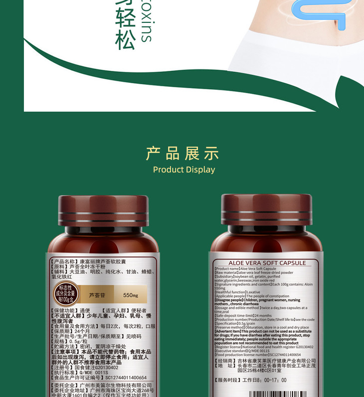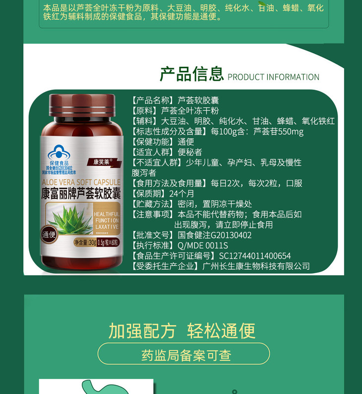 芦荟小棕瓶 通便排便 芦荟全叶冻干粉 健身运动 塑形 正规蓝帽