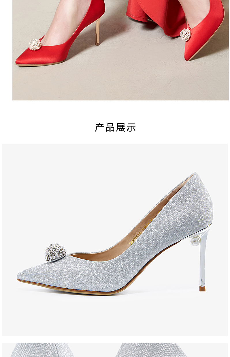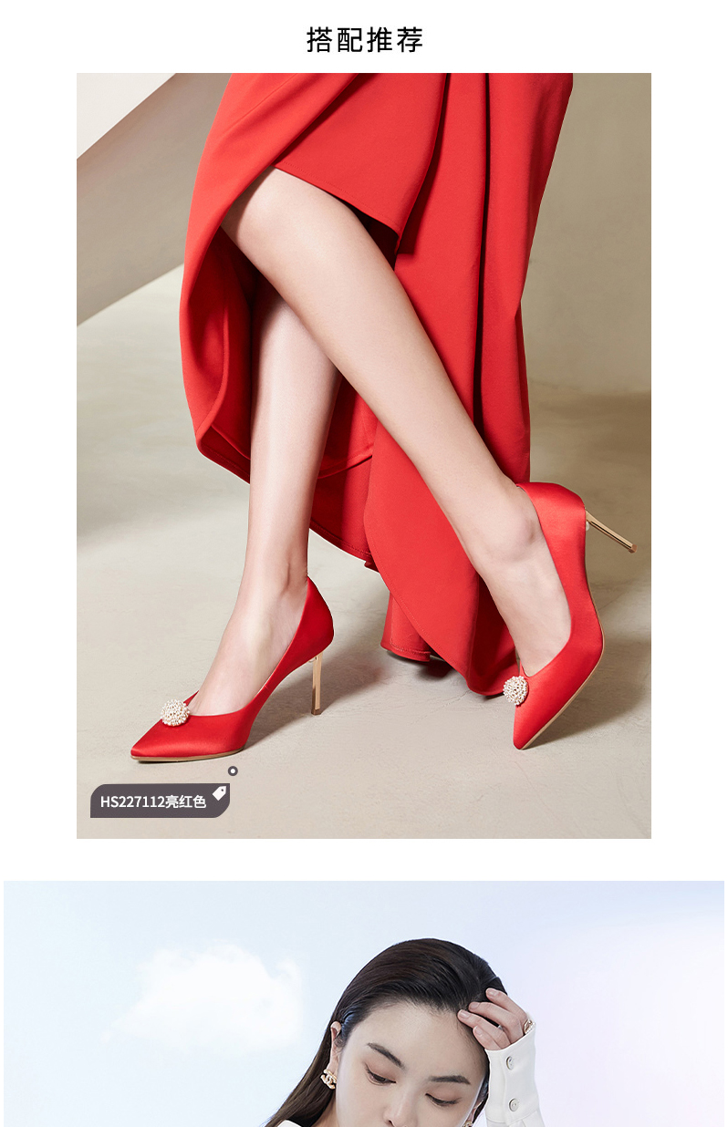 哈森女鞋2022年春季新款欧美细跟尖头时装鞋宴会满邦女单鞋HS227112