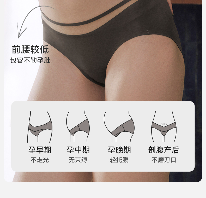 【内衣内裤专场】嫚熙超皮孕妇低腰内裤孕早中晚期无痕透气网纱桑蚕丝加长底裆短裤
