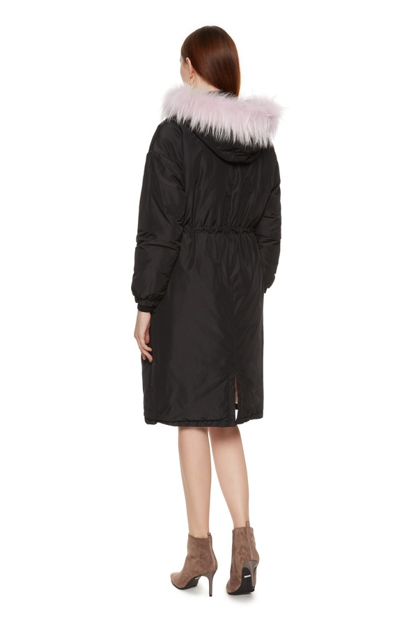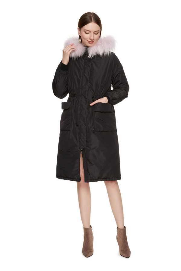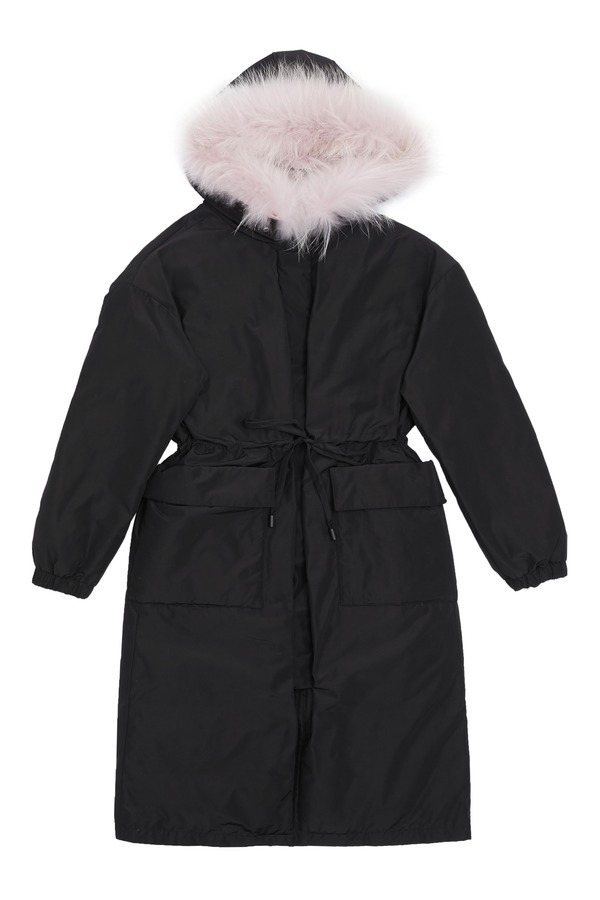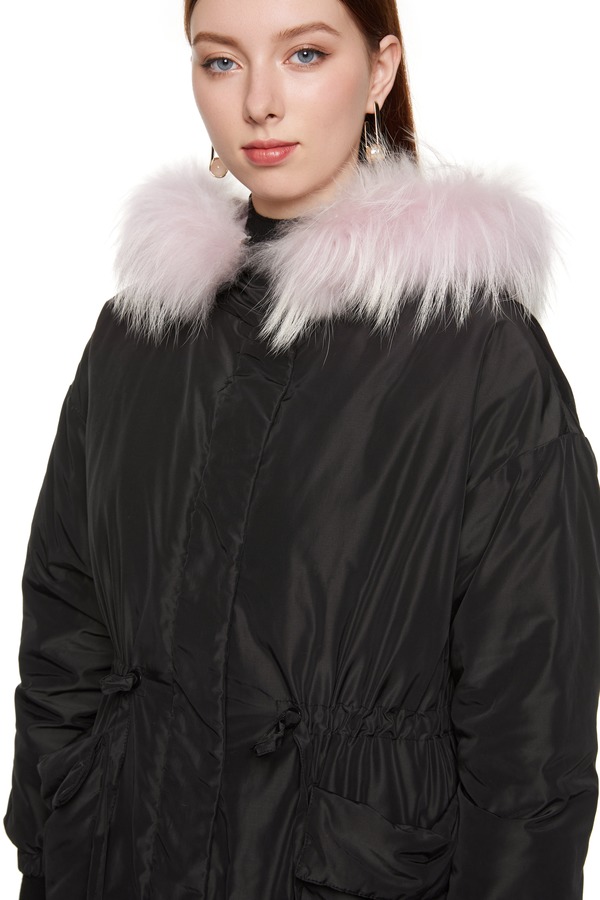 ELLA JADE 毛领拼接黑色羽绒长外套 3720