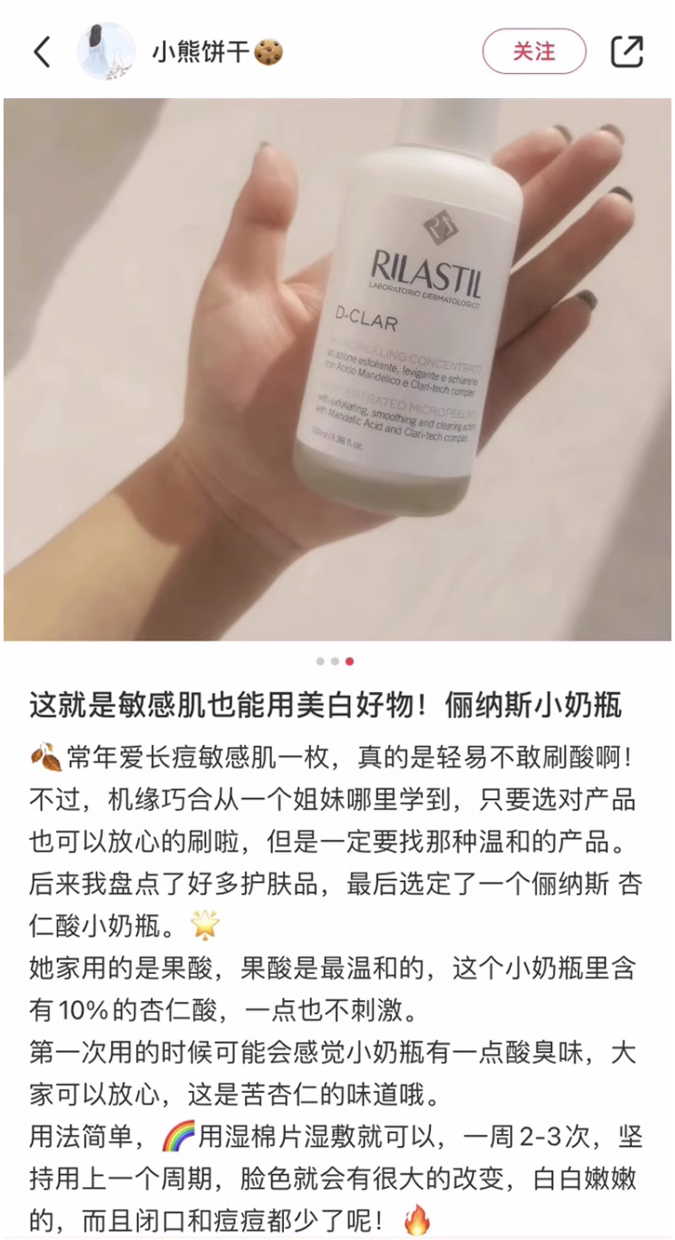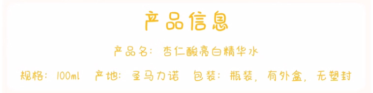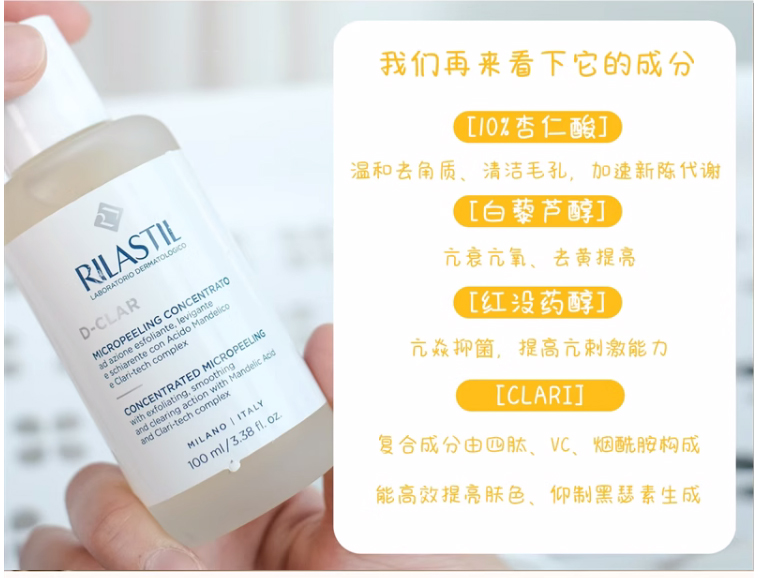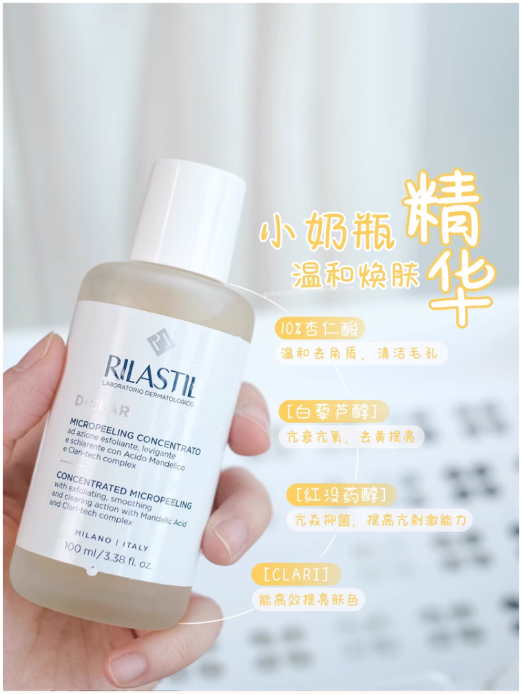 包装有纸盒 纸盒可能有压皱 介意慎拍【品名】RILASTIL俪纳斯10%杏仁酸亮白精华水100ml