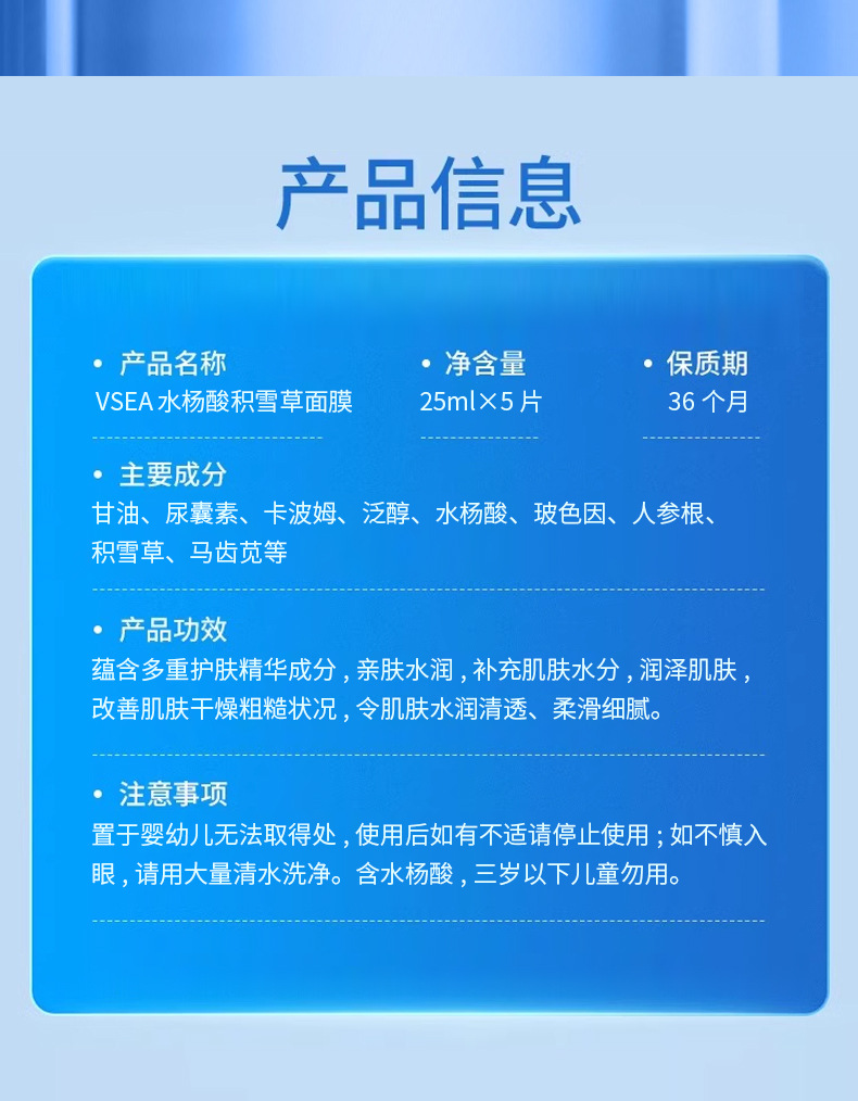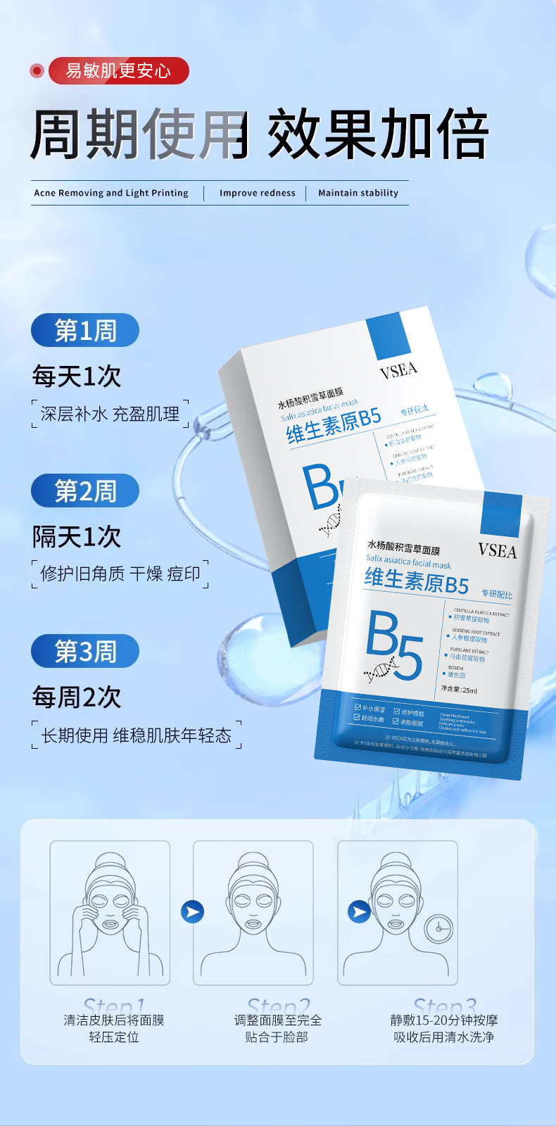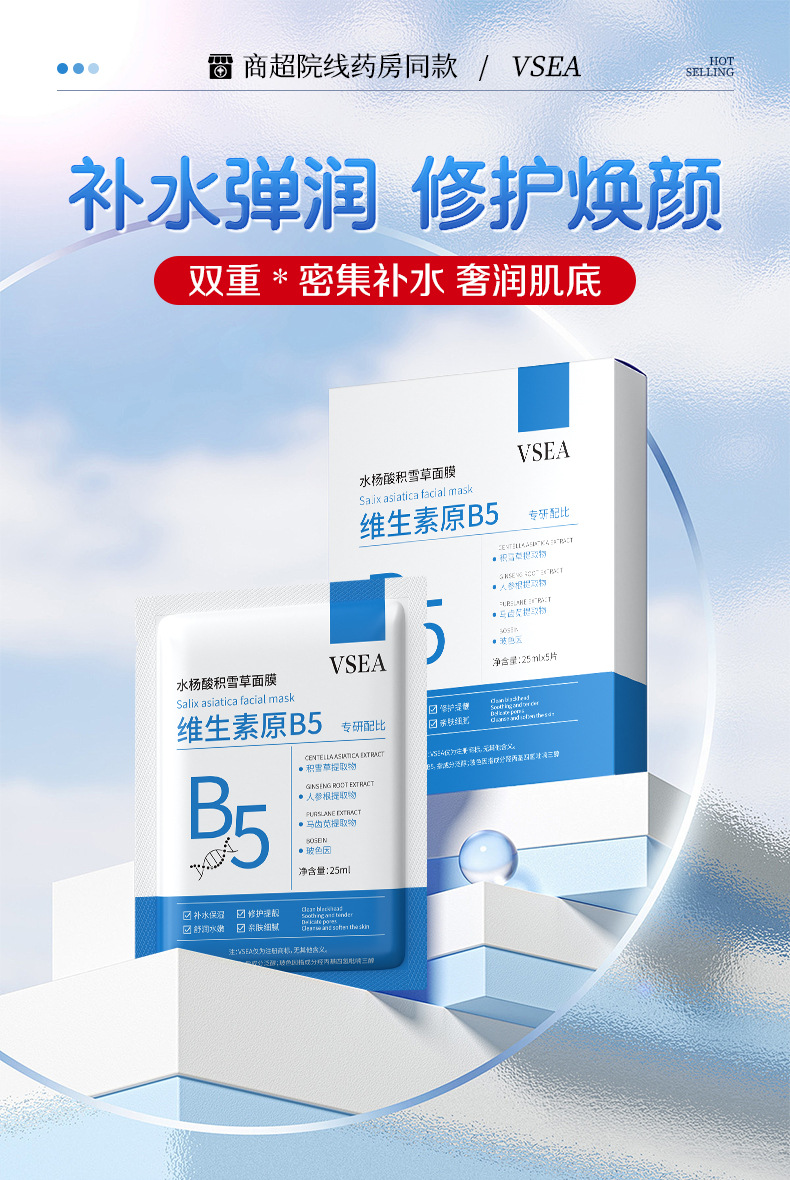 「买1送1!到手两盒」VSEA维生素原B5面膜水杨酸积雪草净颜面膜补水保湿晚安冻膜面膜冷敷贴