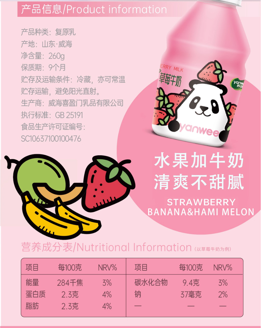 【品名】养味草莓牛奶香蕉哈蜜瓜甜牛奶260ML