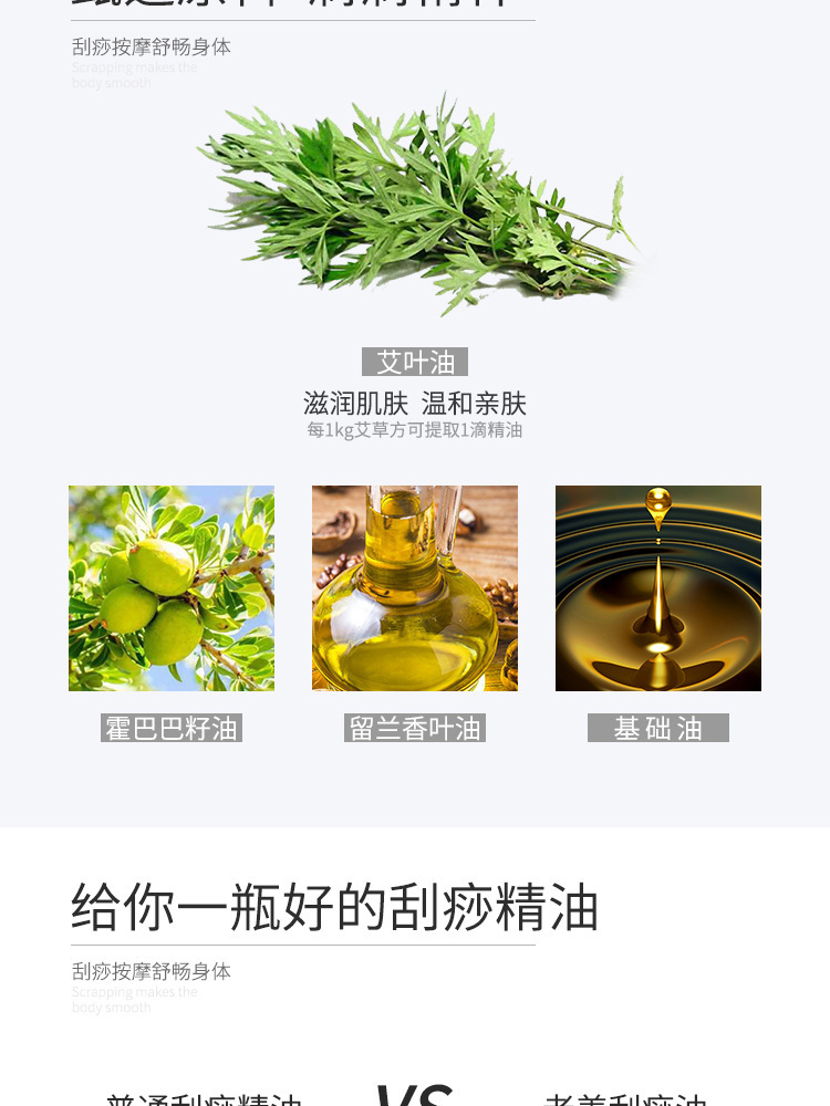 艾草按摩油美容院推拿spa专用刮痧推开背部通经络家用艾灸油批发