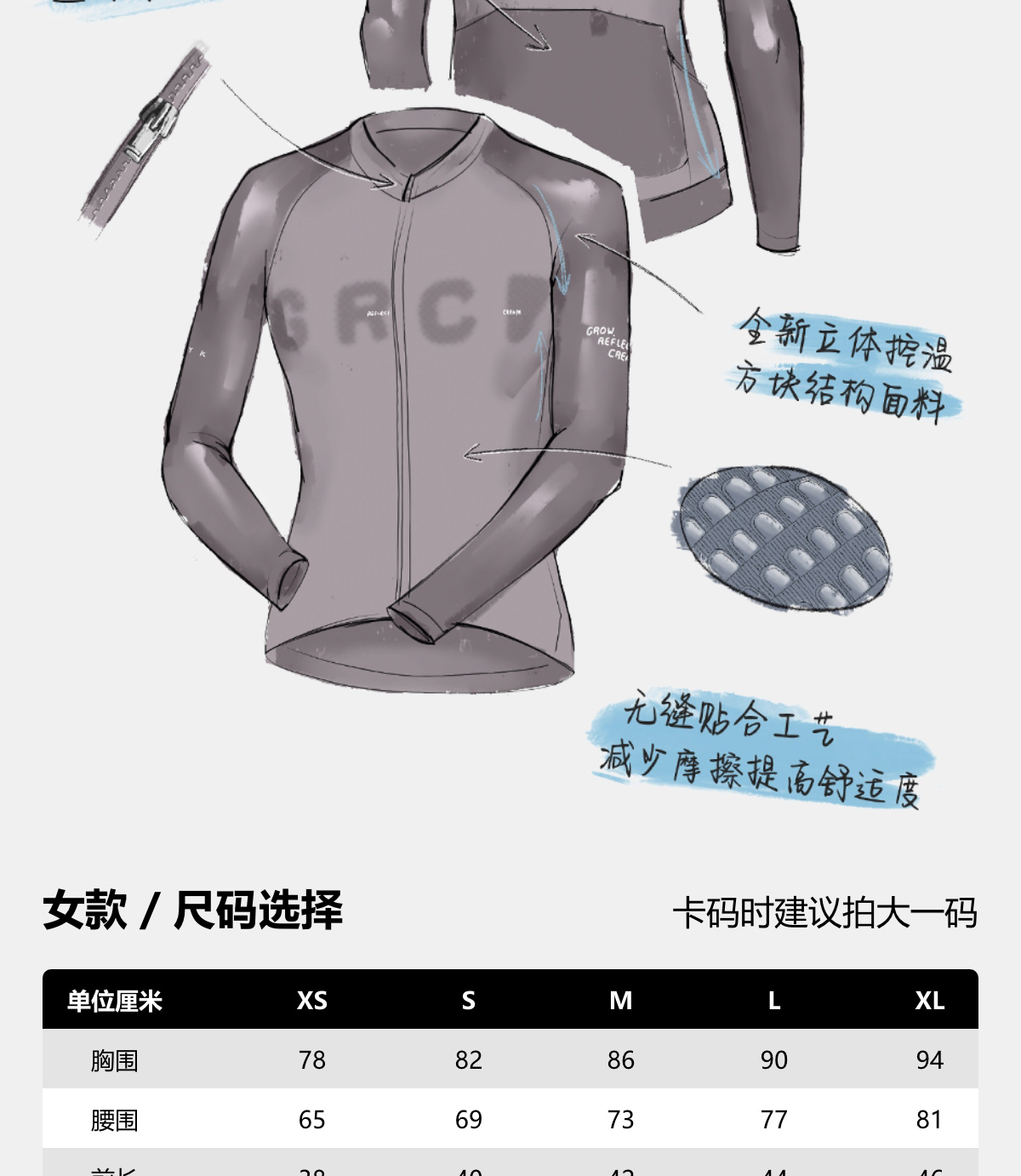GRC桀骜无尽夏季新款cmyk系列控温方块女士长袖公路自行车骑行服