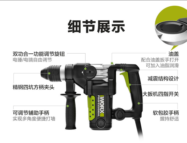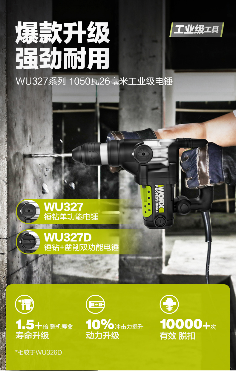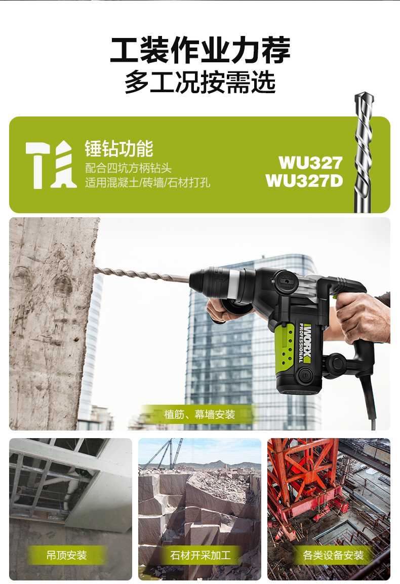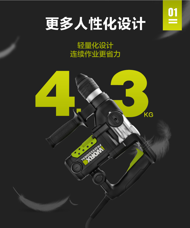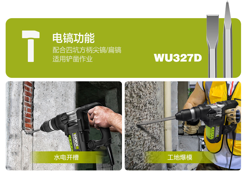 威克士电锤WU327D电锺电镐四功大功率冲击钻打混凝土电搞电动工具