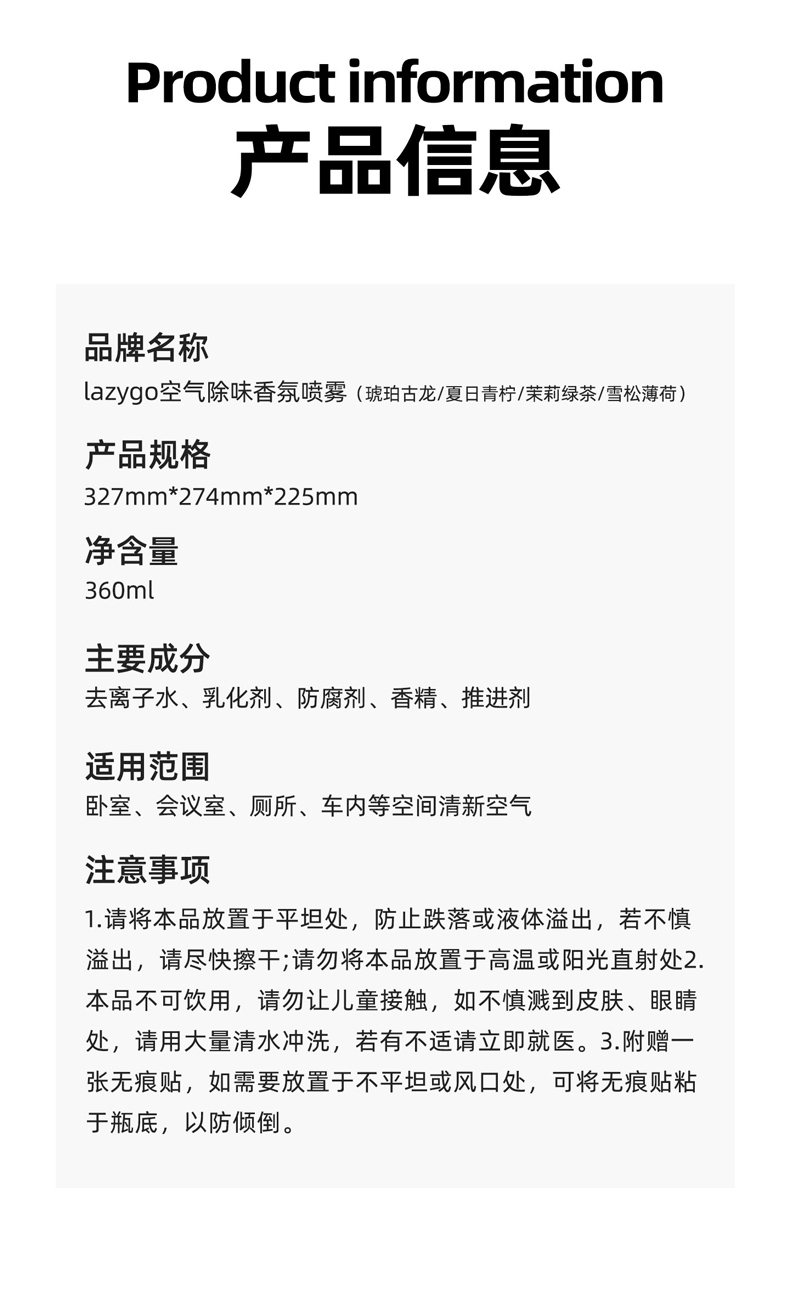 lazygo空气清新剂360ml