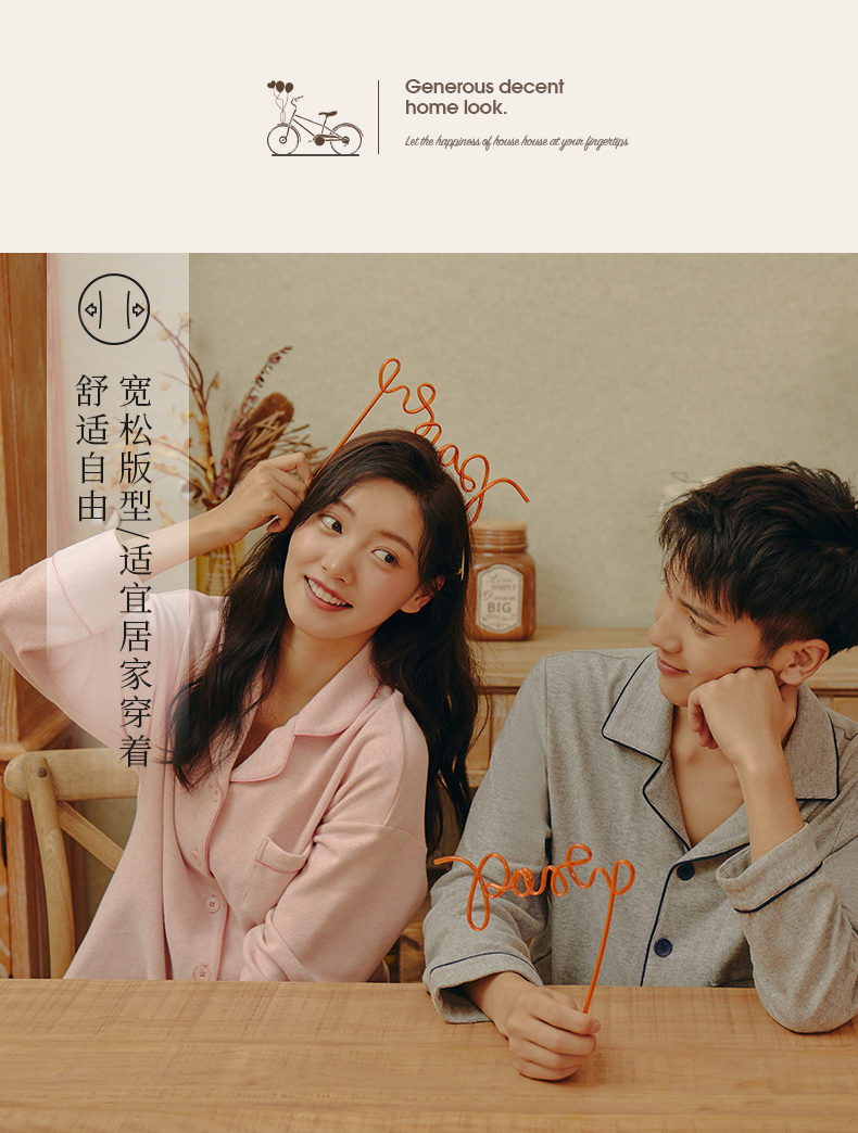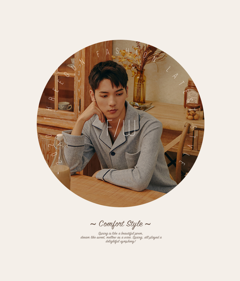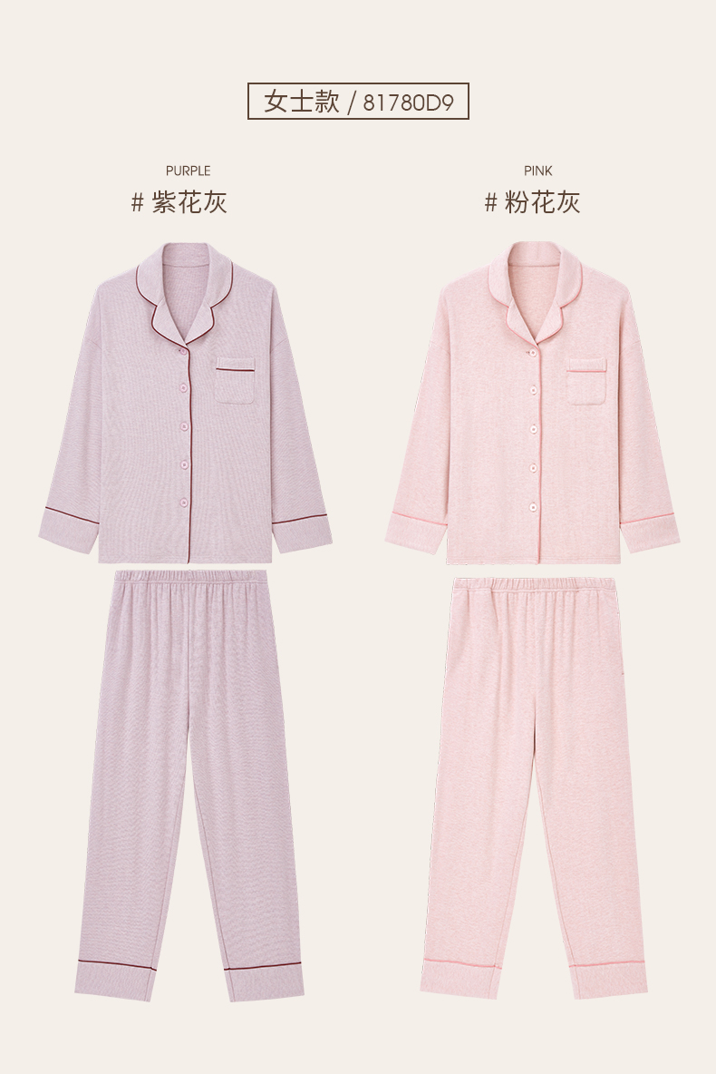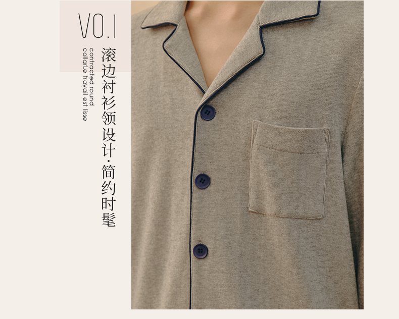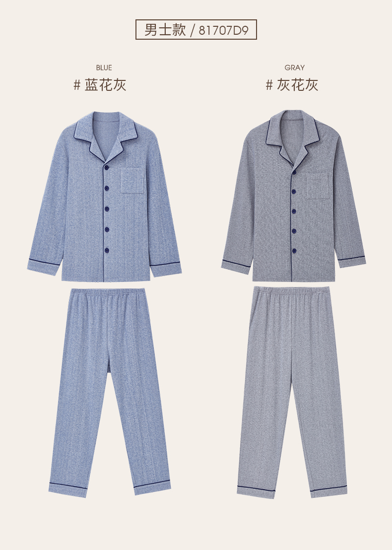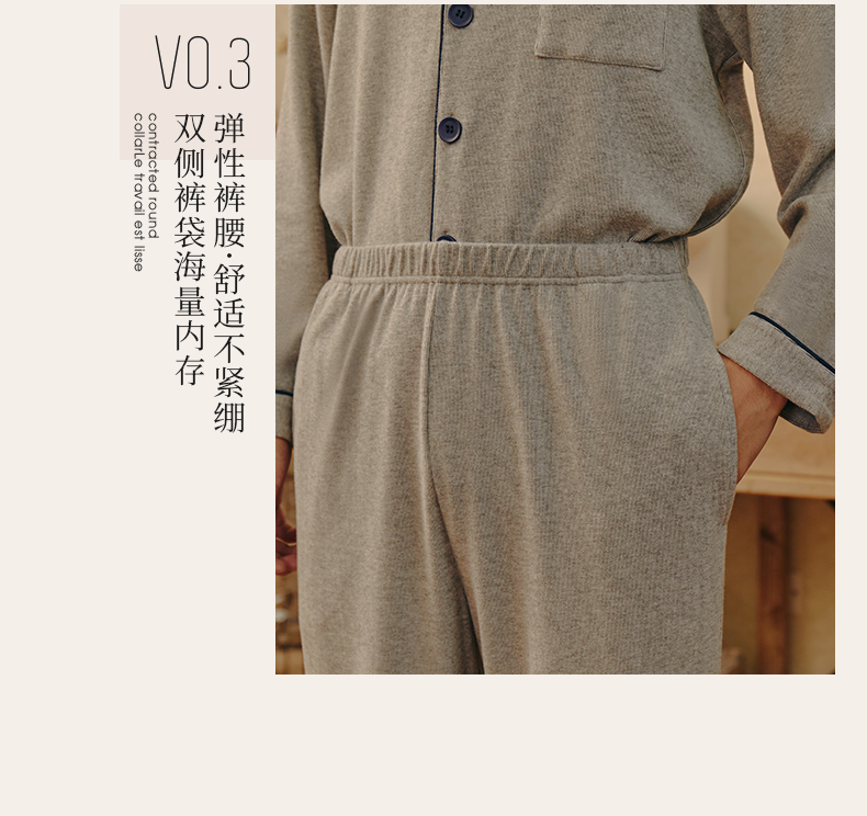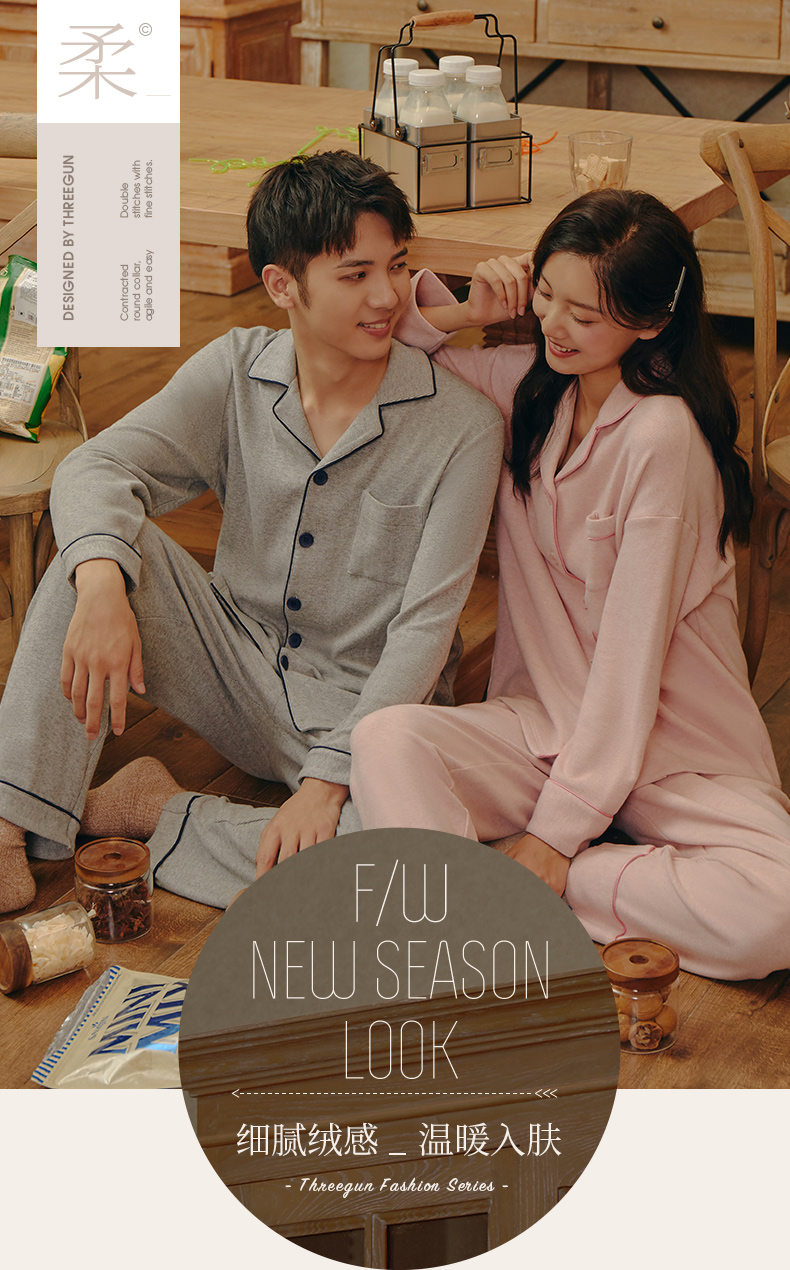 Threegun三枪 【花灰绒】翻领开襟长袖长裤男士家居套家居服-81707D911