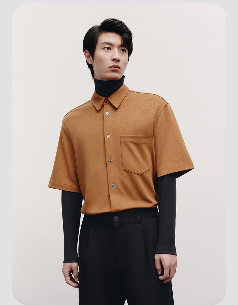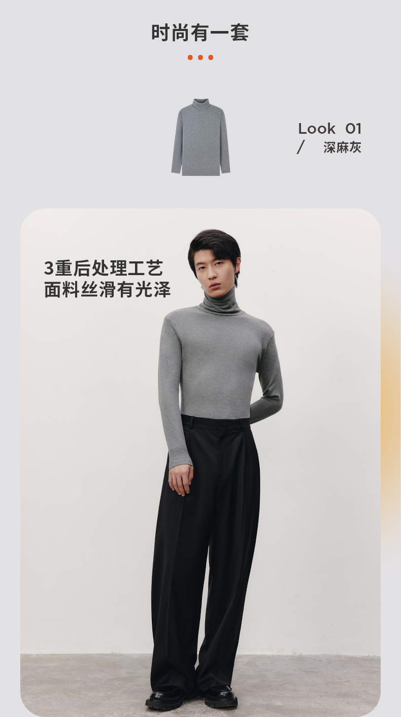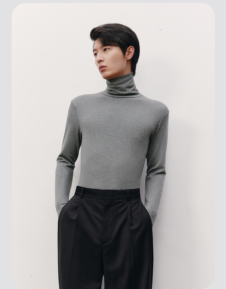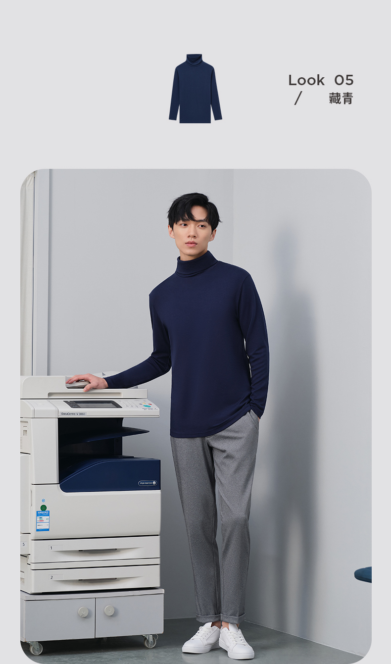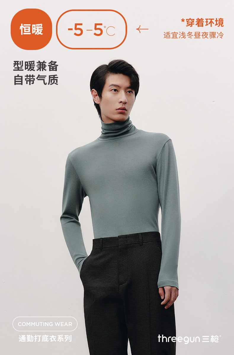 Threegun三枪 【爽滑密棉】休闲两翻领男士长袖上衣打底衫-22623A011