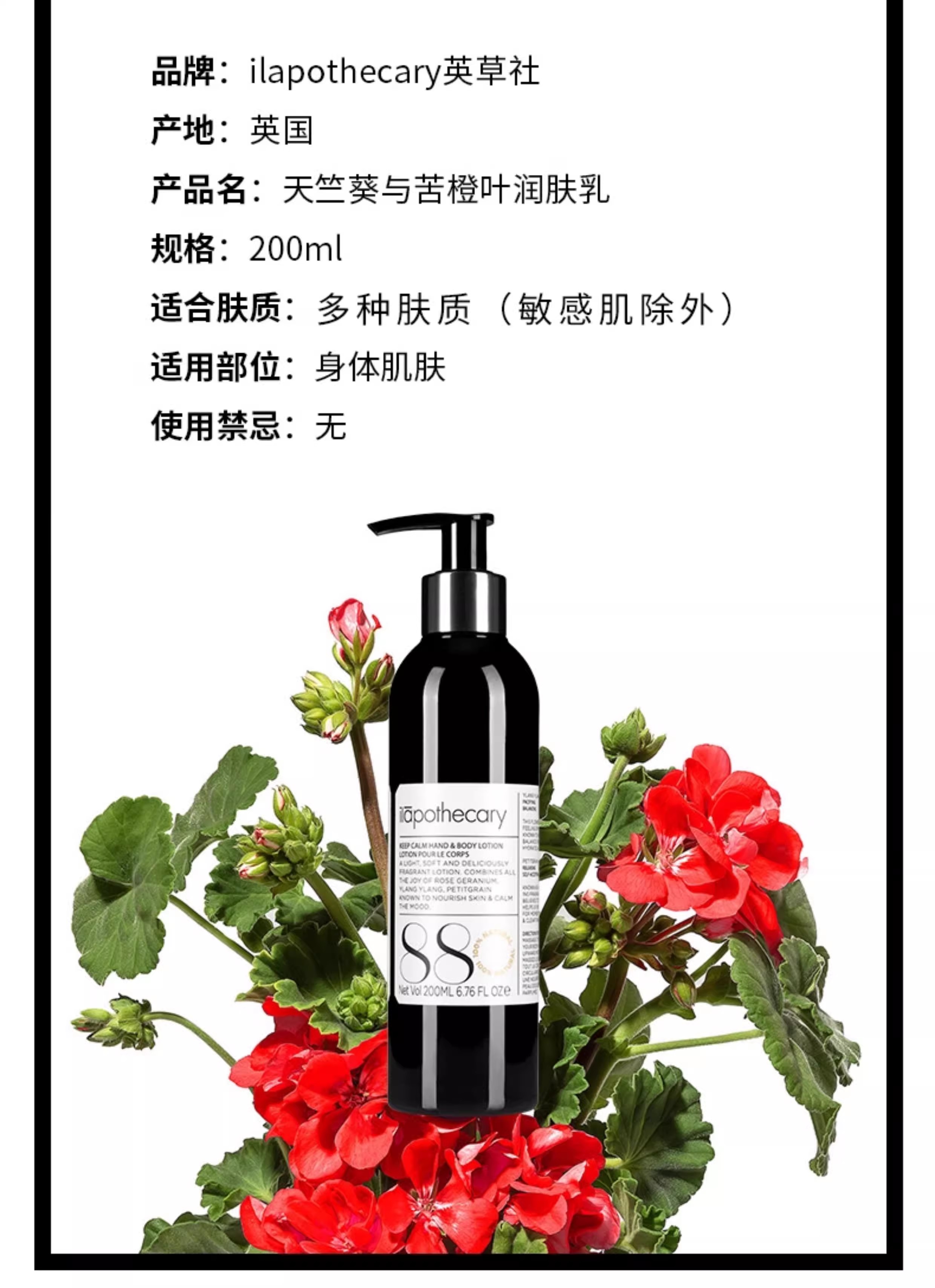 英草社88号天竺葵&苦橙叶身体乳200ML 章小惠推荐