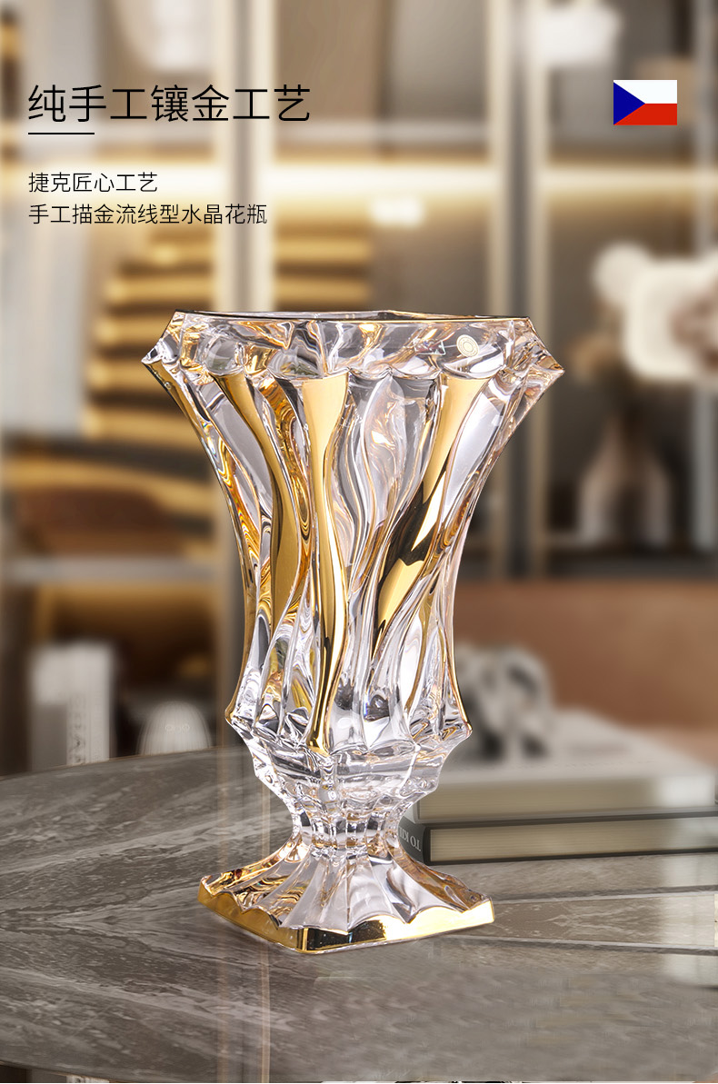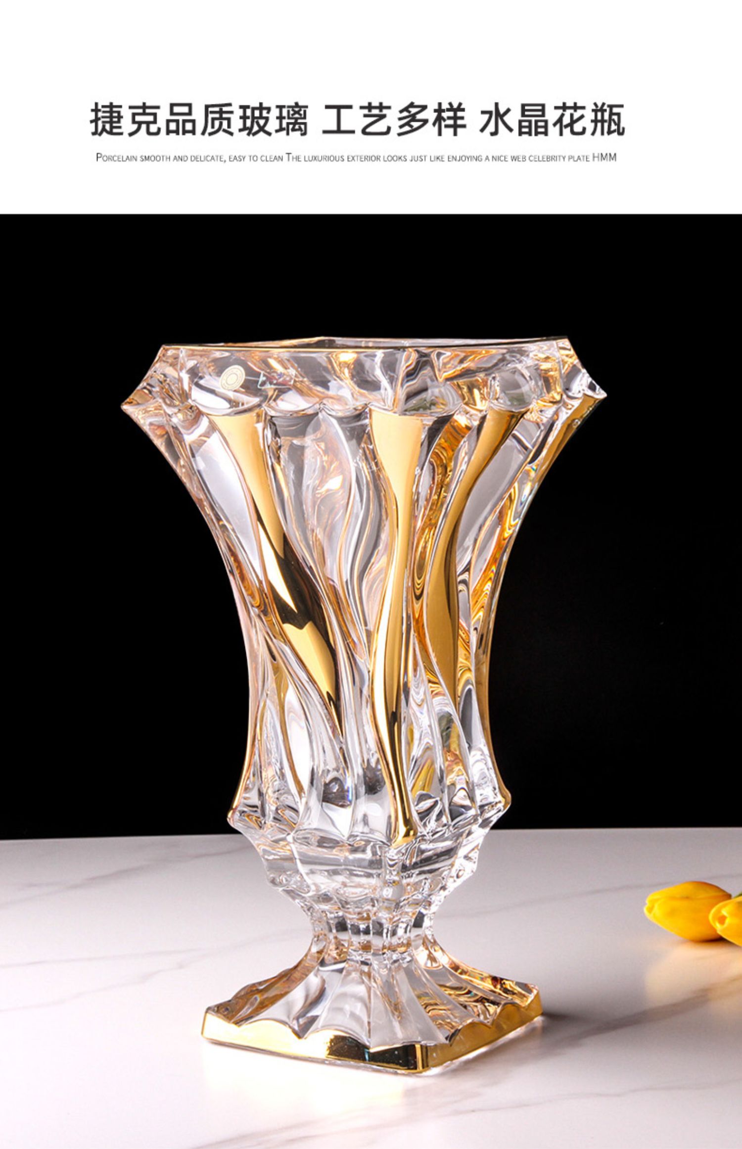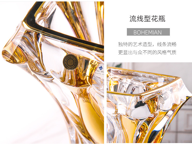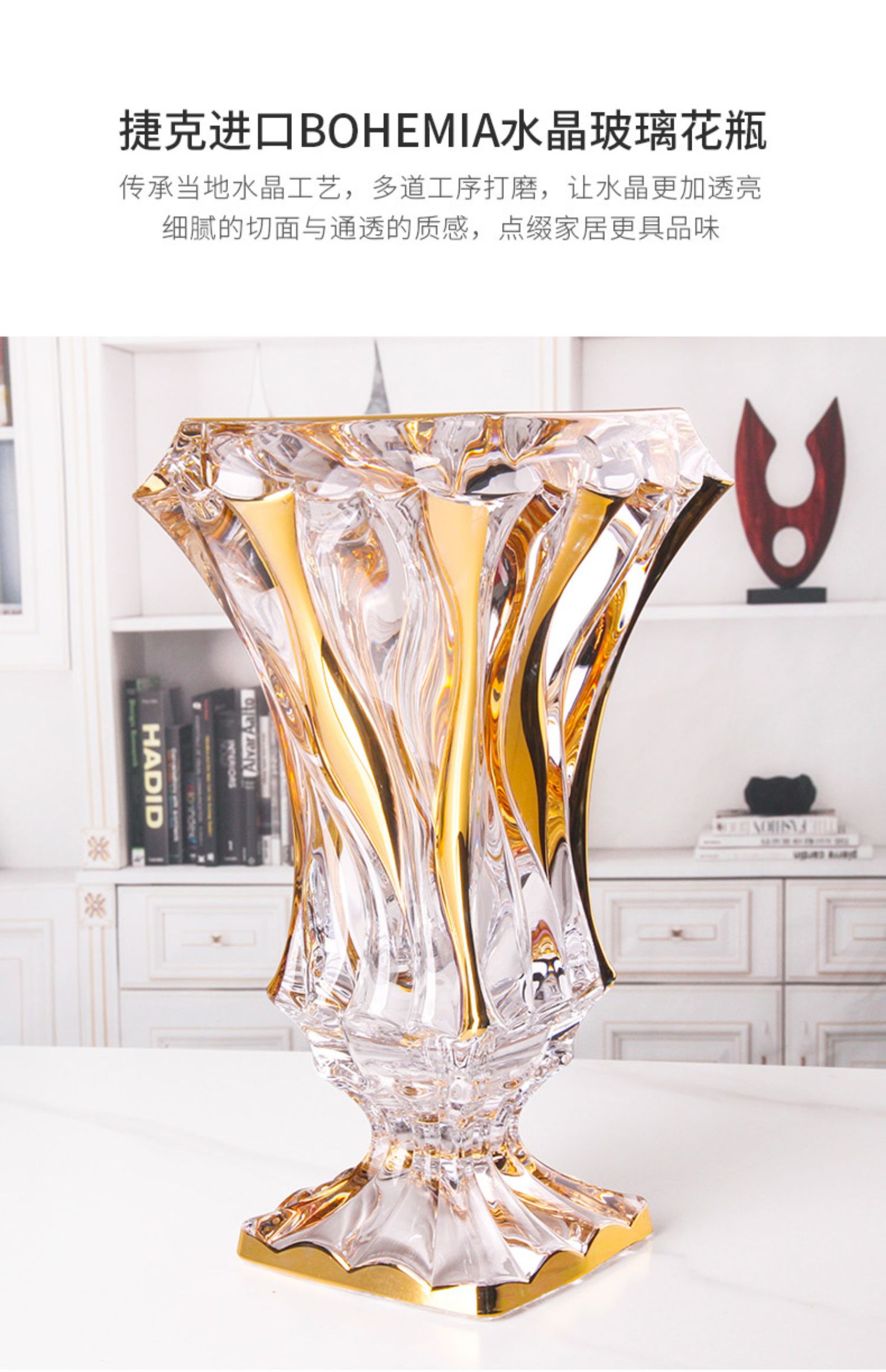 捷克BOHEMIA进口水晶玻璃描金透明 花瓶摆件客厅插花 富贵竹花瓶
