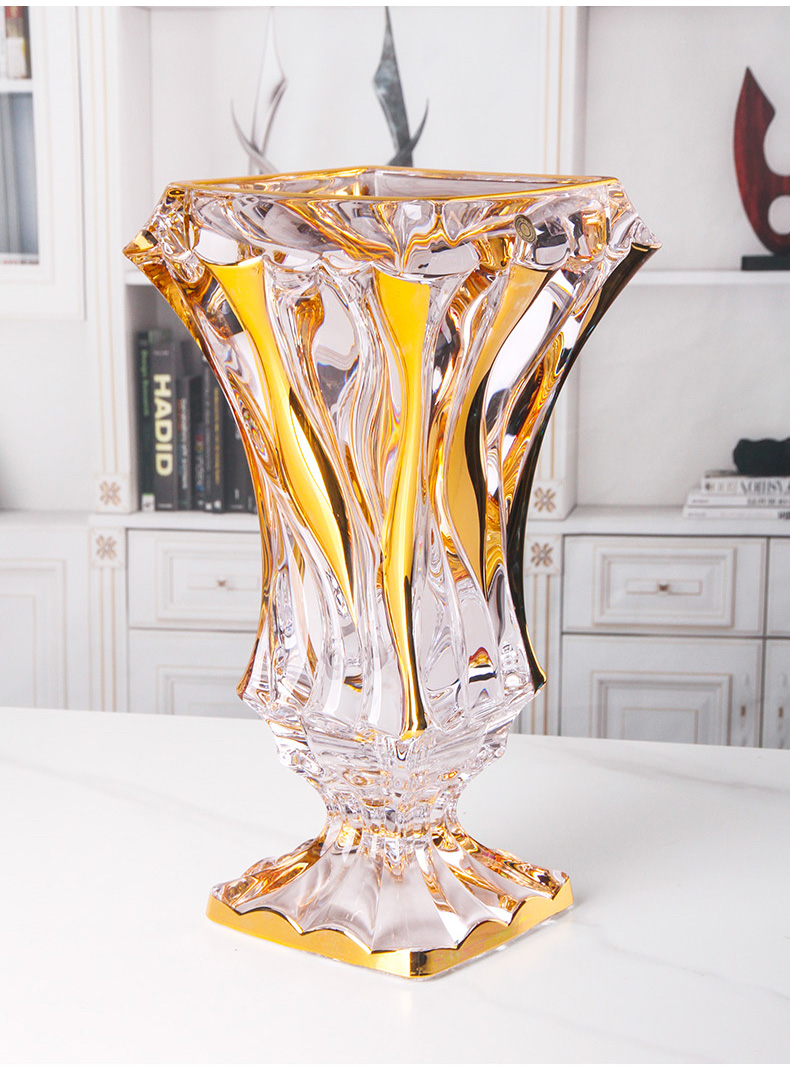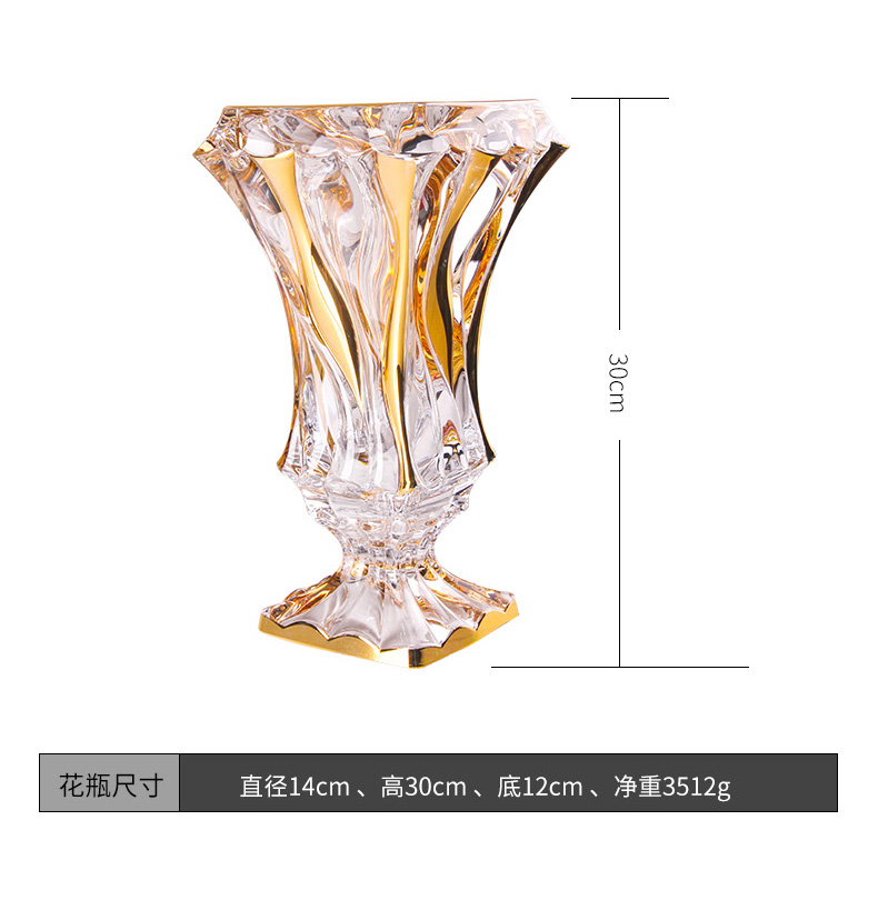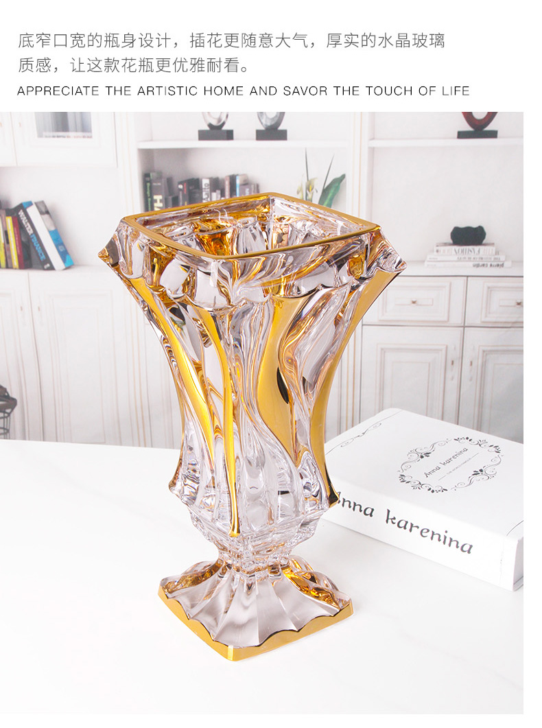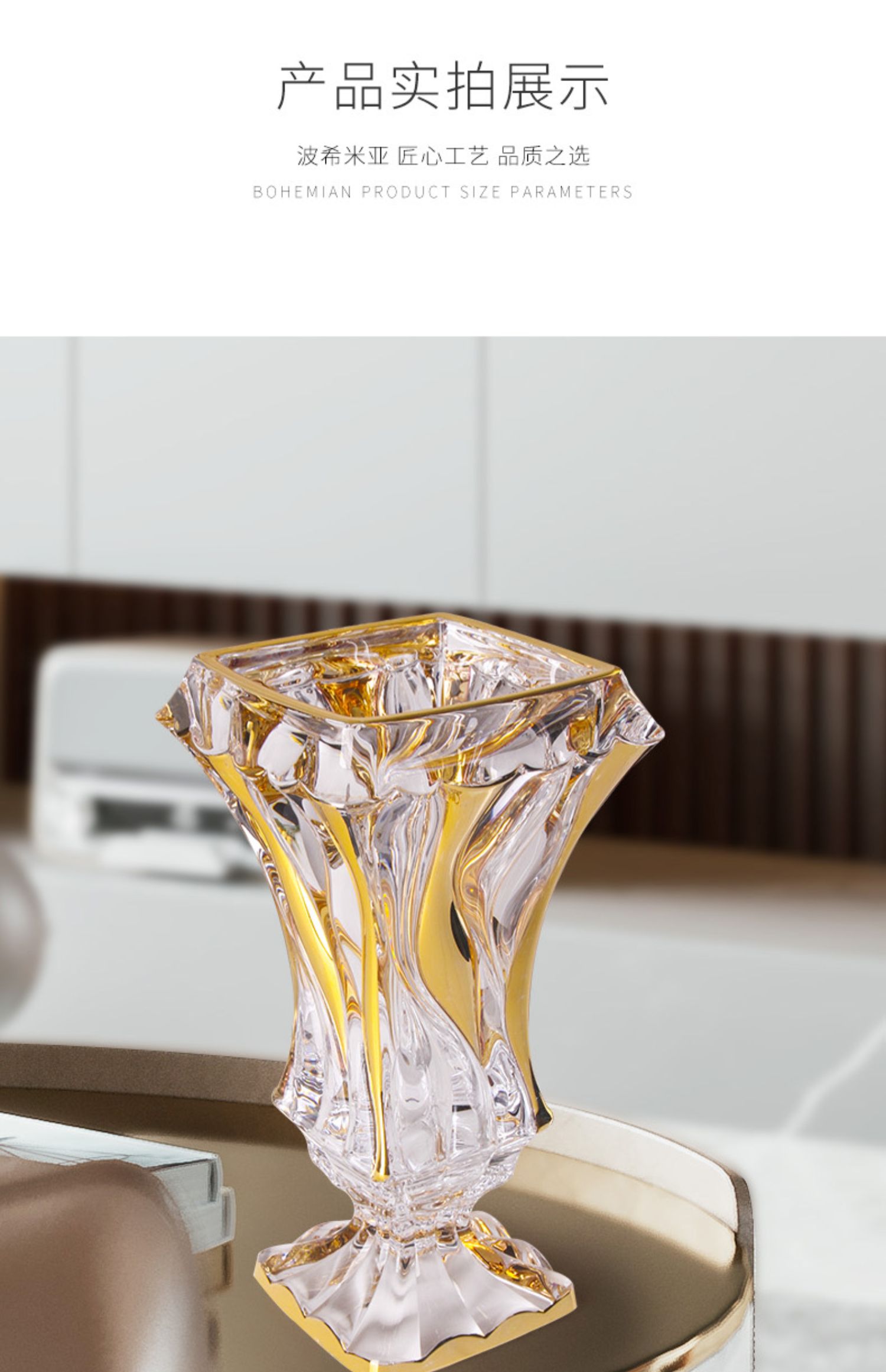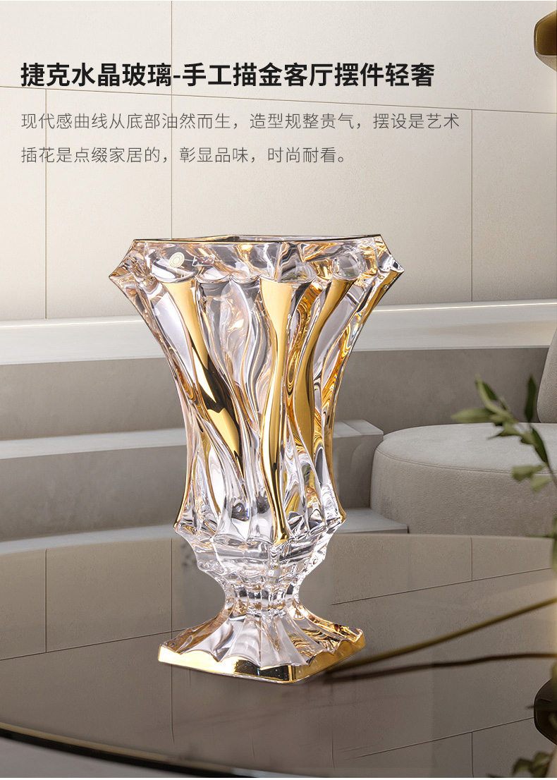 捷克BOHEMIA进口水晶玻璃描金透明 花瓶摆件客厅插花 富贵竹花瓶